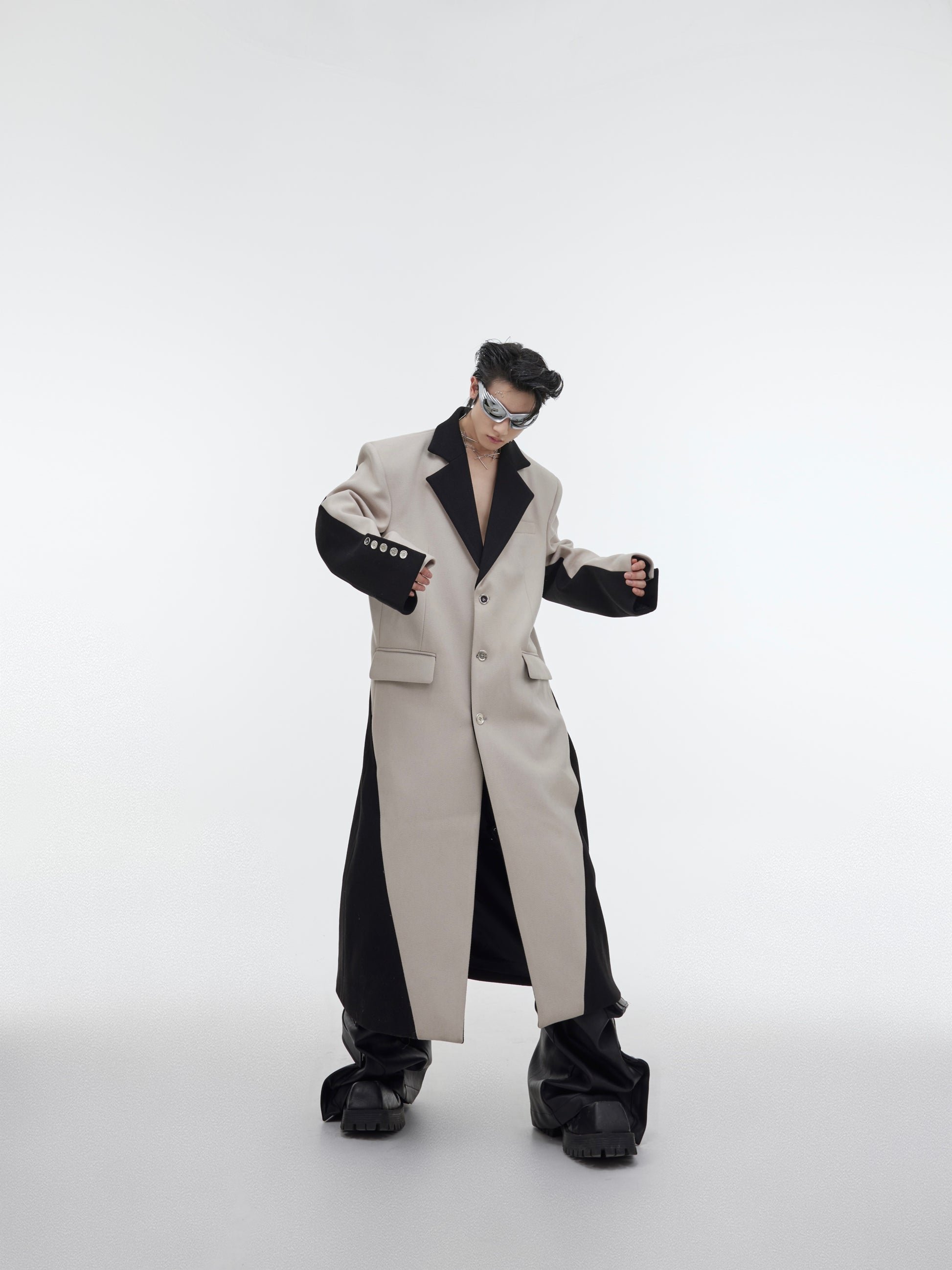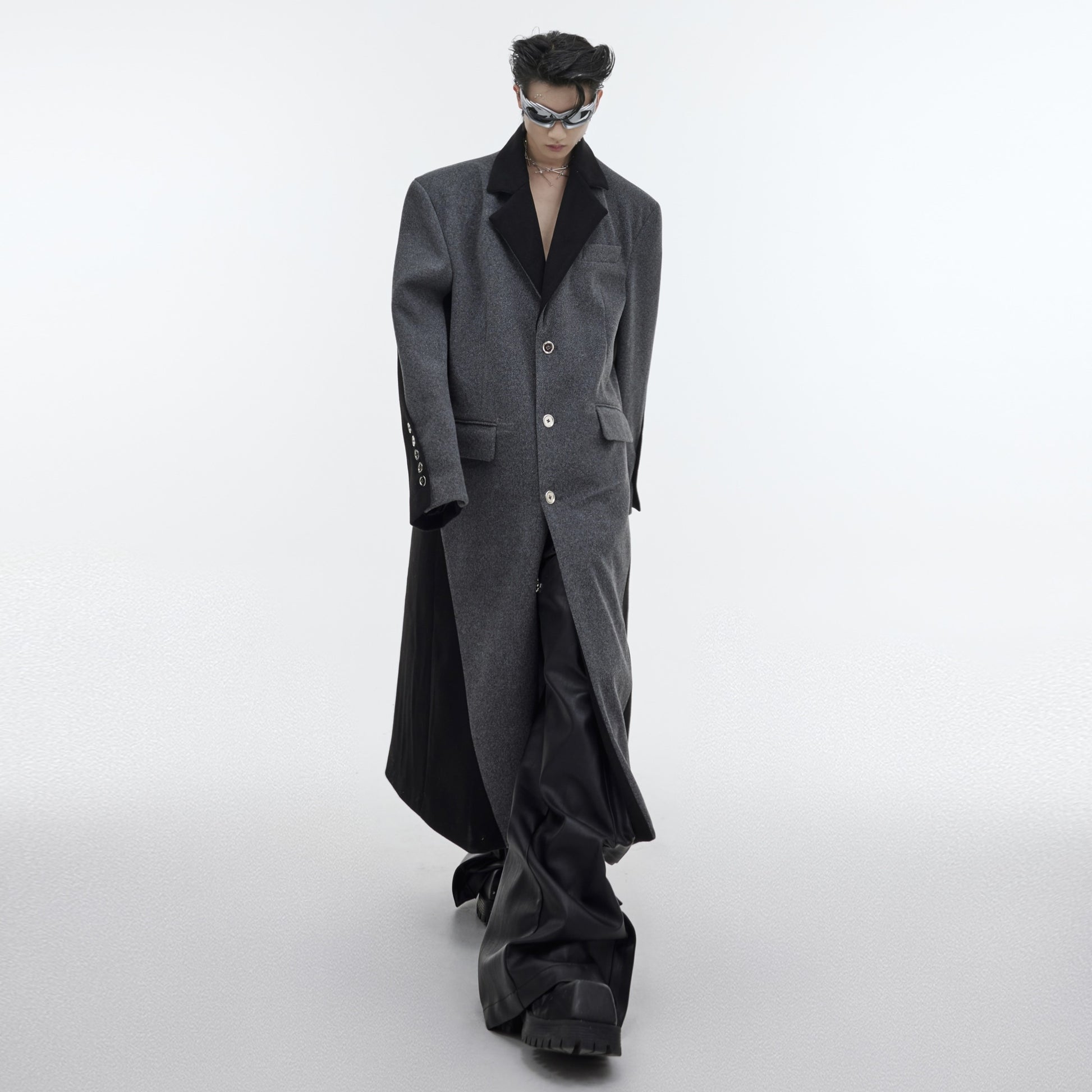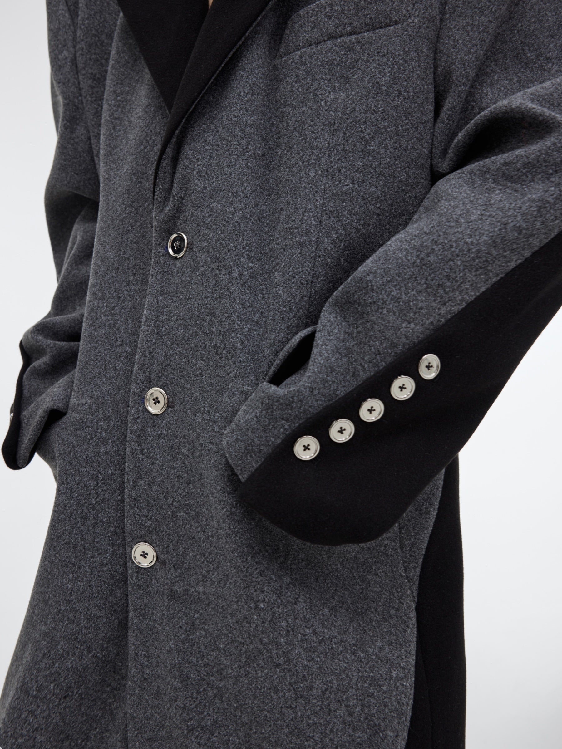 Cappotto lungo in lana al ginocchio con patchwork di colori a contrasto