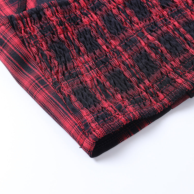 Dark Department Checkered Halter Lace Straps Pleated Skirt