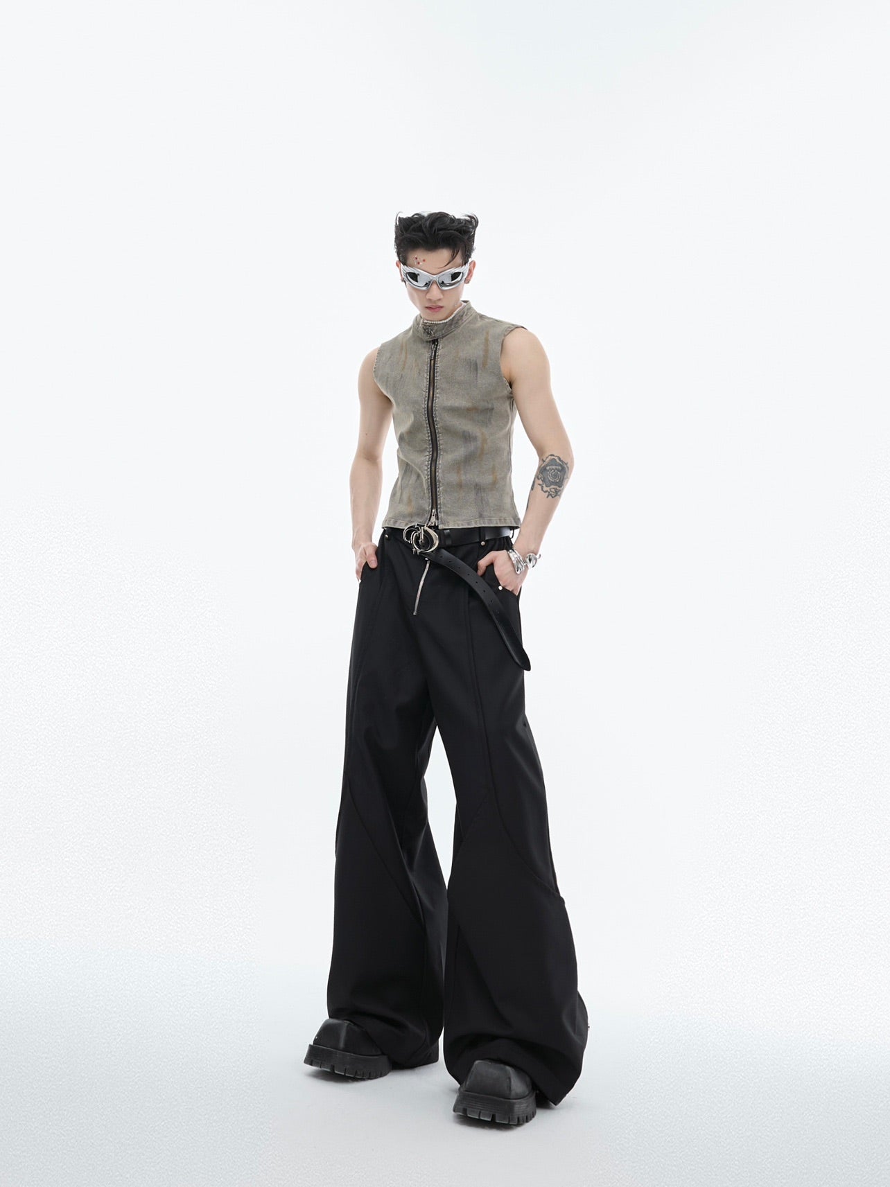 Double-layer Stitching Suit Pants Metal Button Design Casual Pants