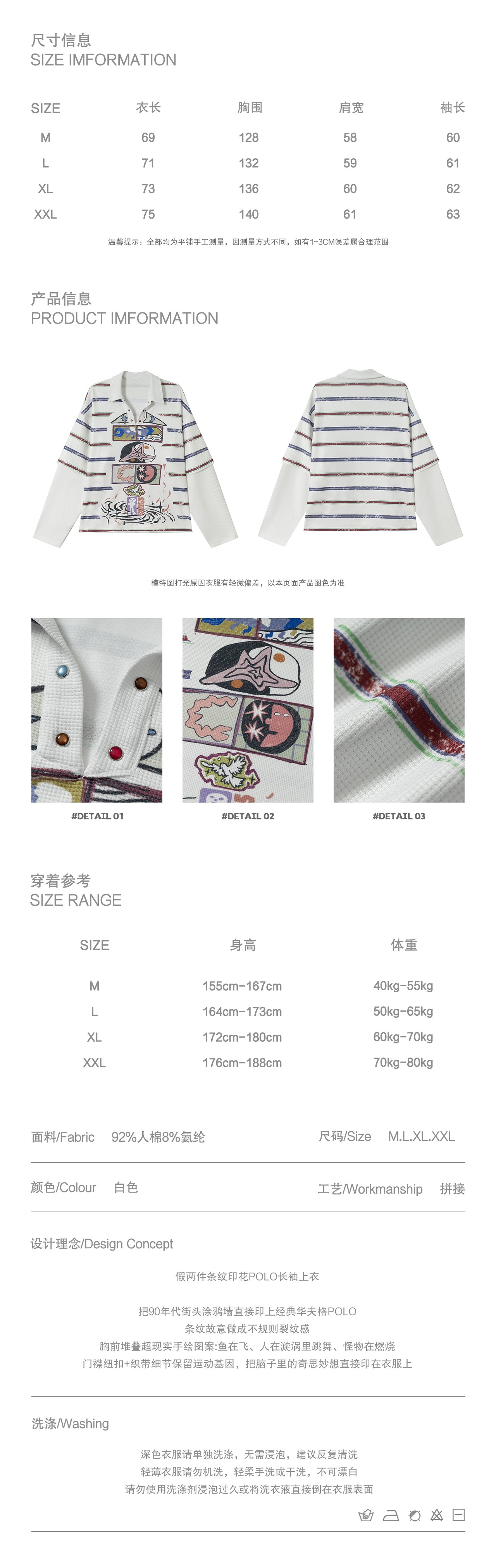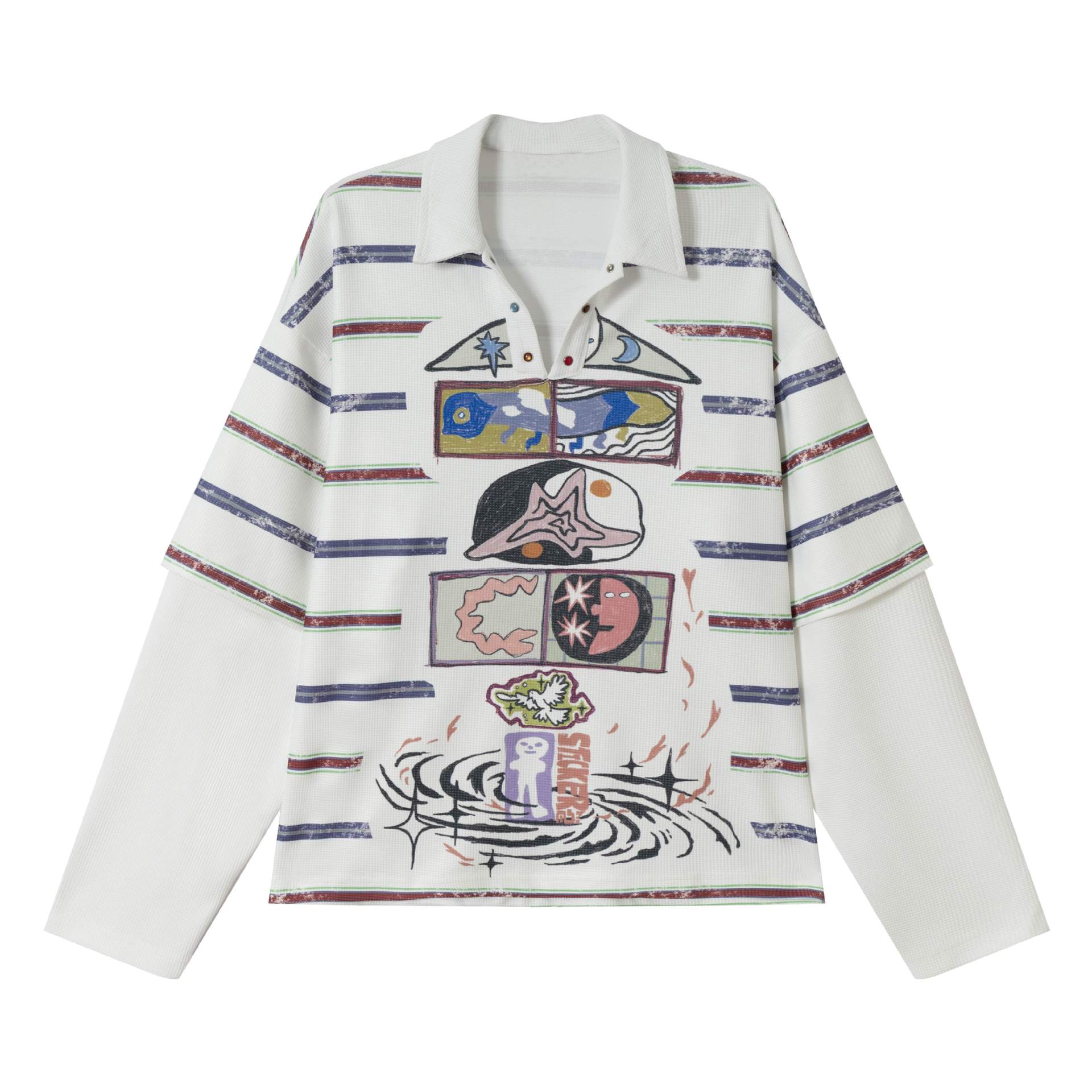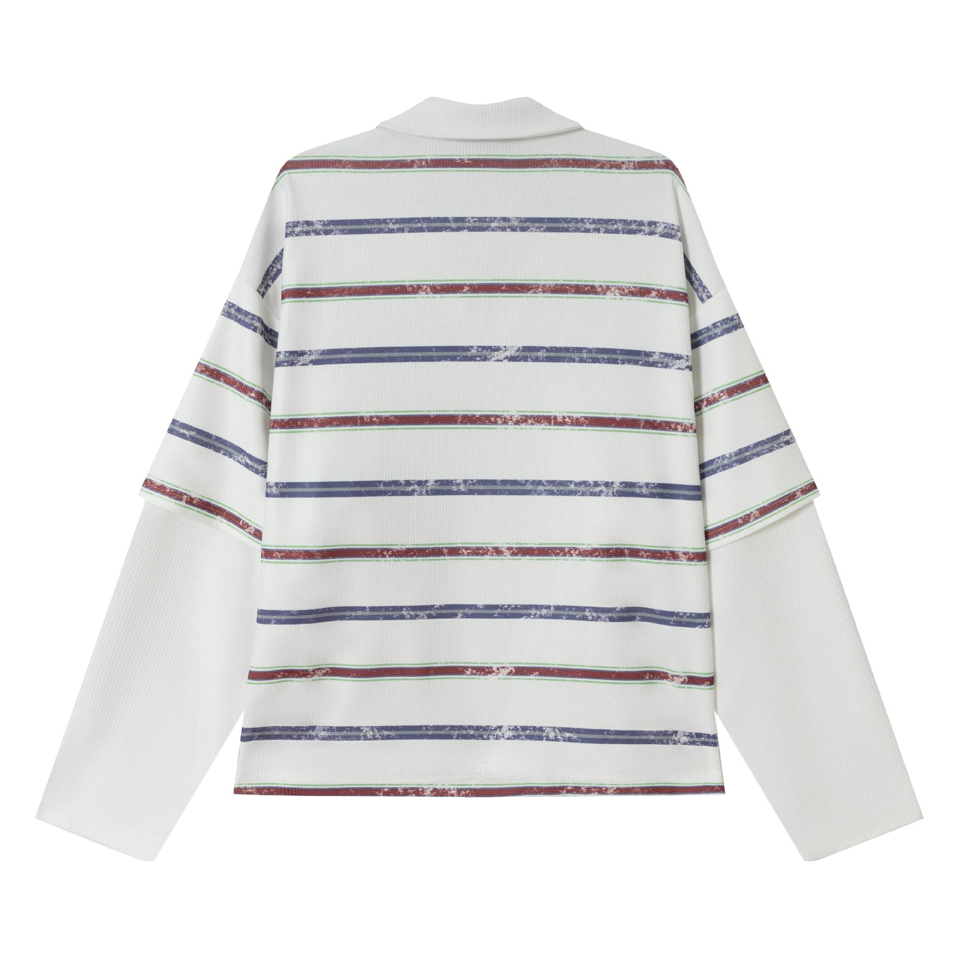 Fake Two-Piece Printed Striped Shirt Hoodie Trendy Versatile Top For Couples Men And Women