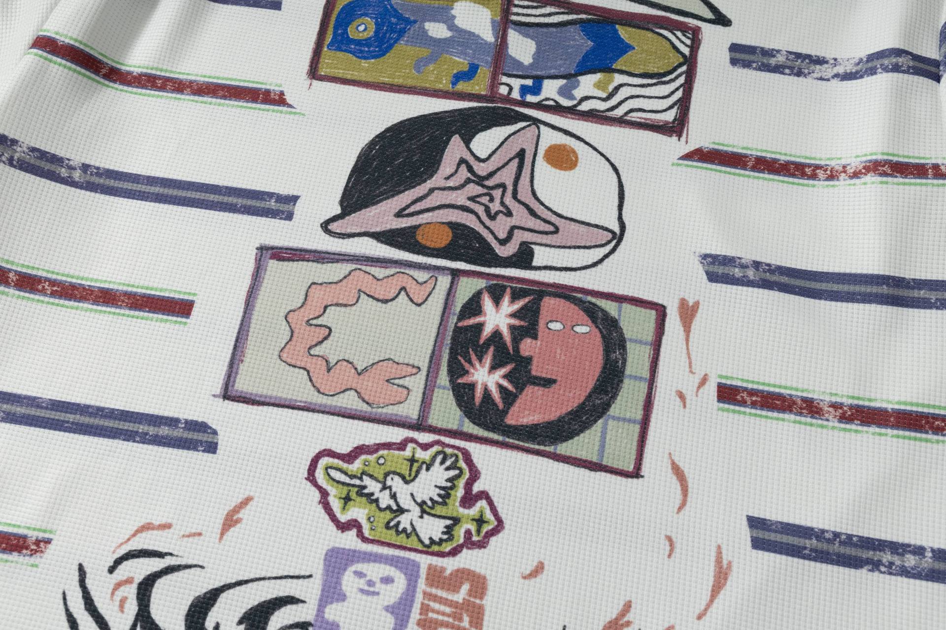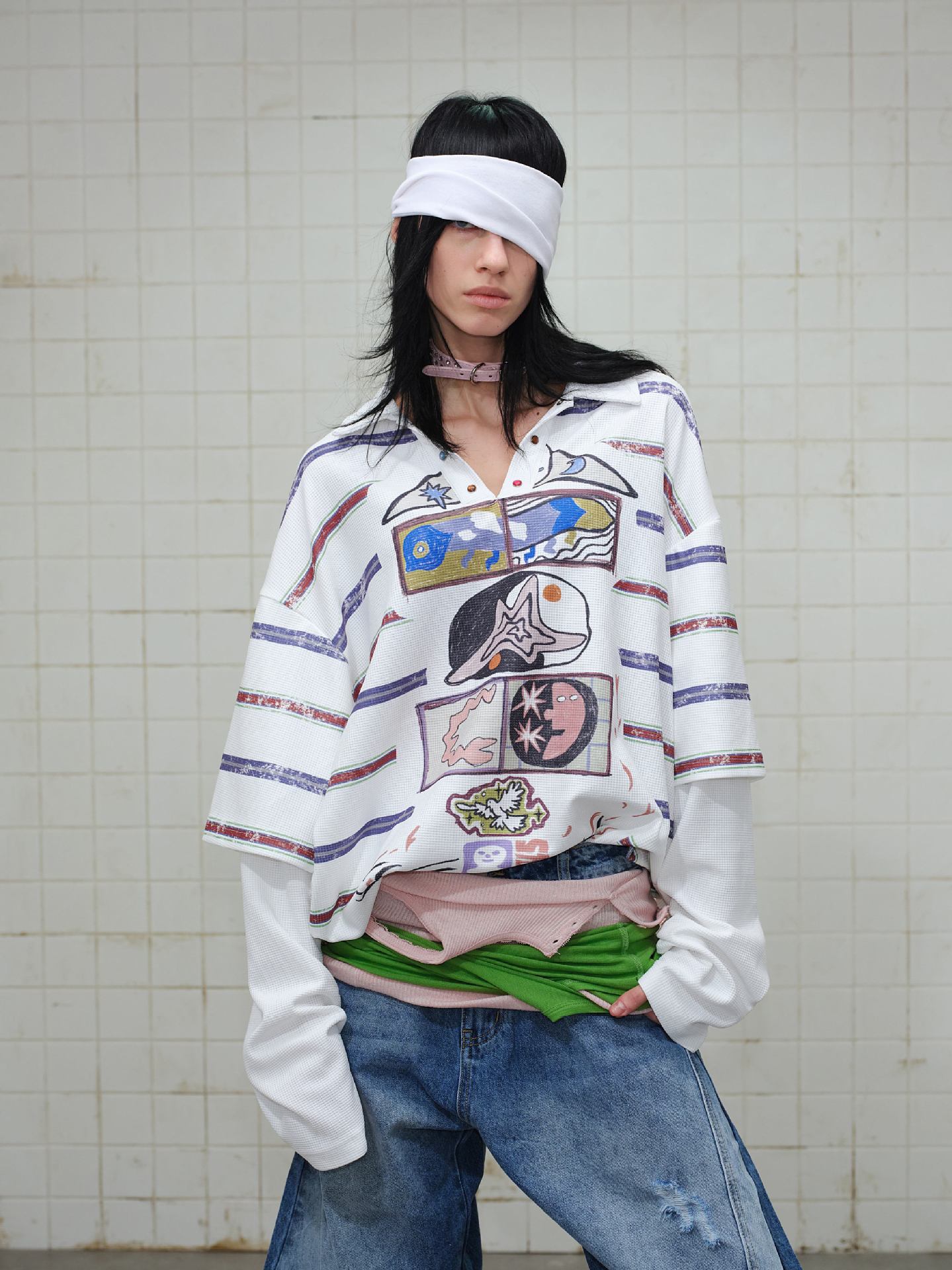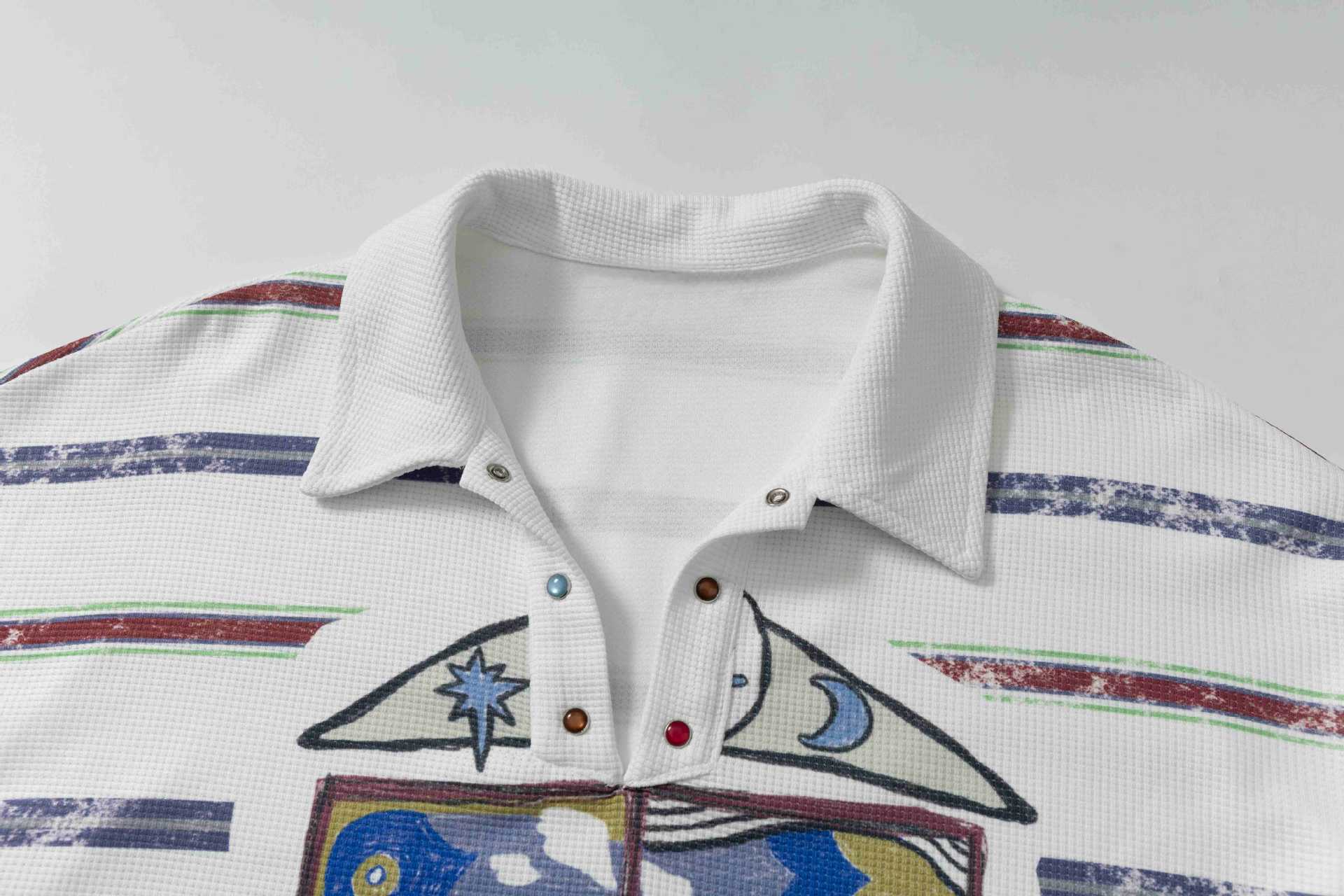 Fake Two-Piece Printed Striped Shirt Hoodie Trendy Versatile Top For Couples Men And Women