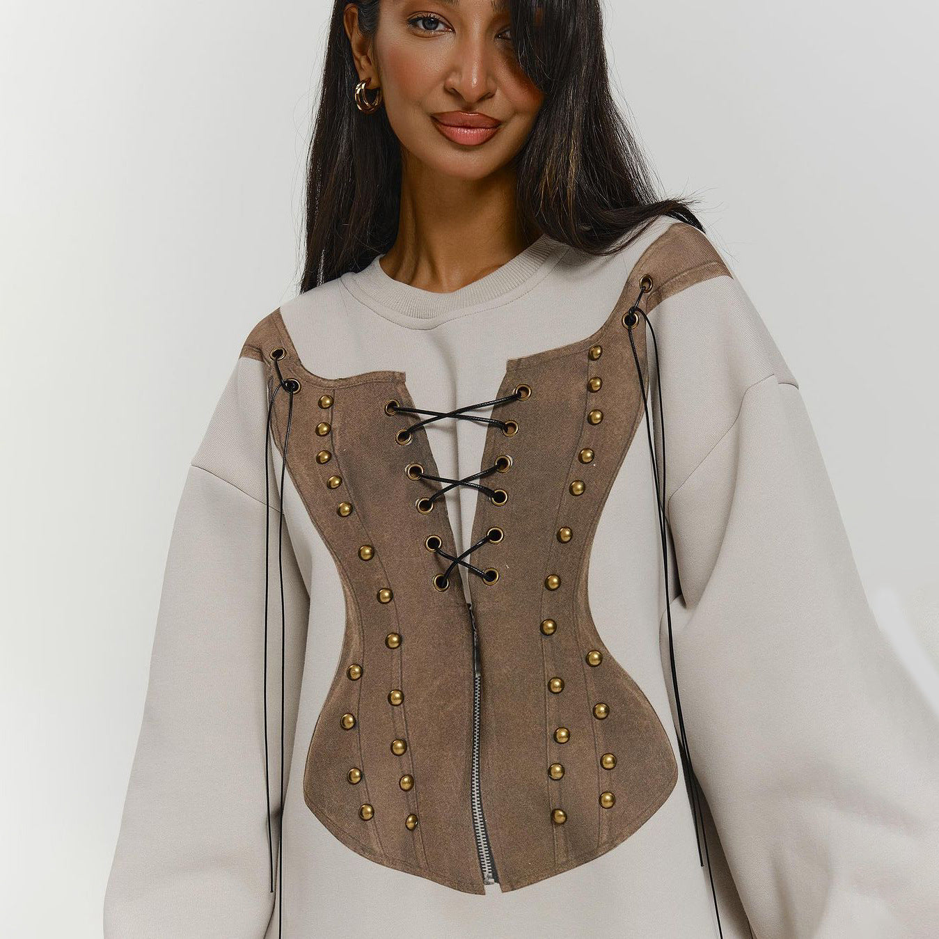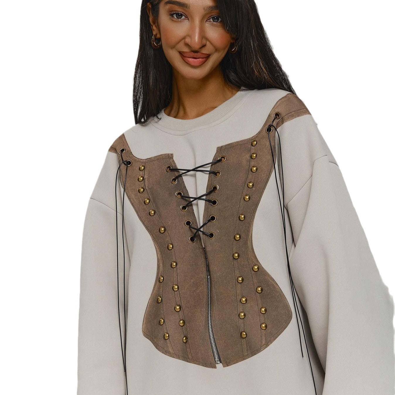 Fashion Loose Casual Contrast Color Round Neck Sweater