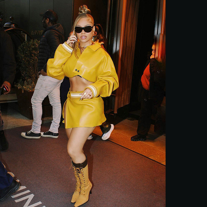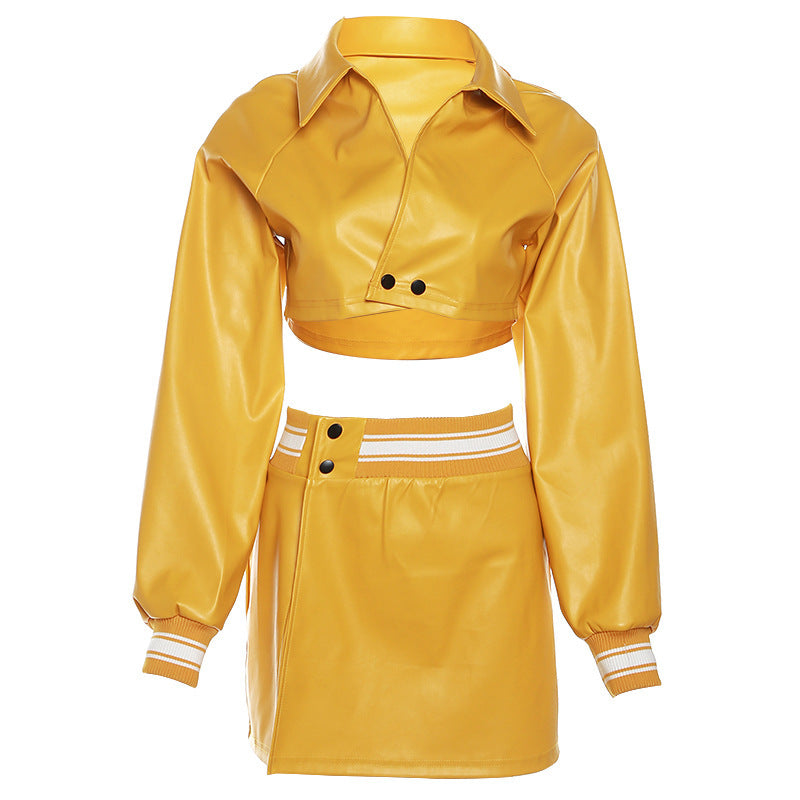 Completo gonna a vita alta con cintura sui fianchi in similpelle tinta unita alla moda