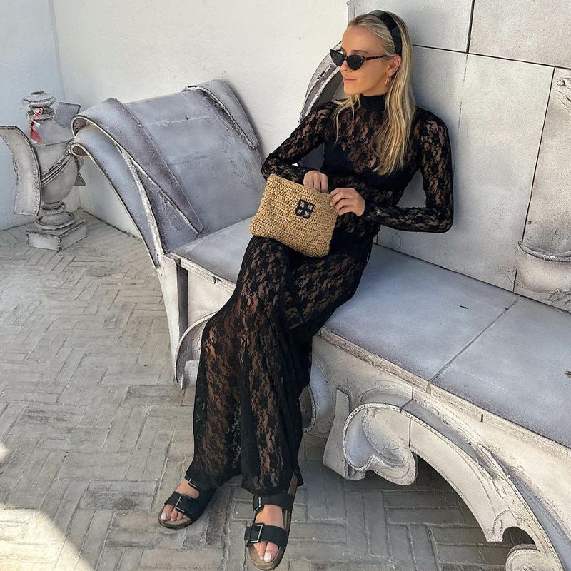 Abito in pizzo traforato sexy in rete trasparente alla moda