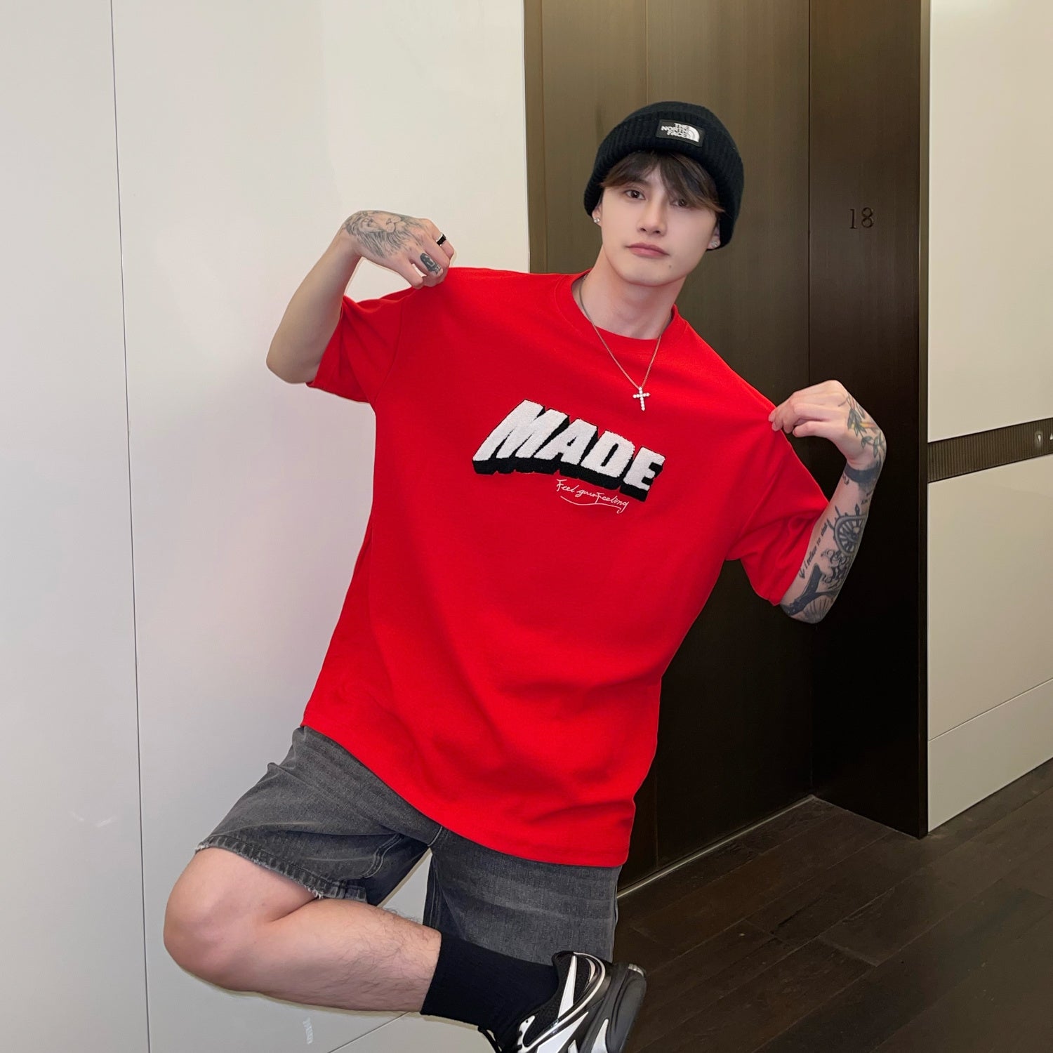 Flocked Lettering Loose Casual Round Neck Short Sleeve T-Shirt