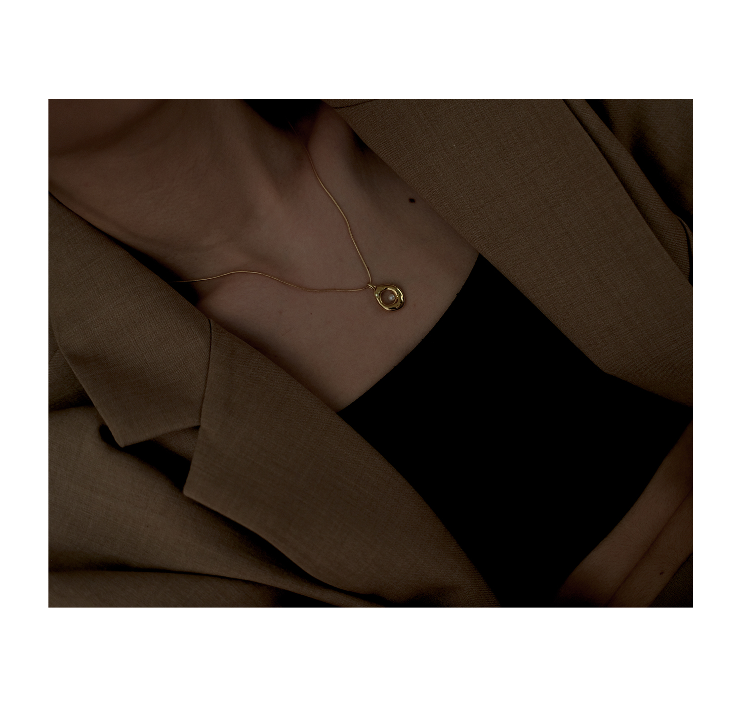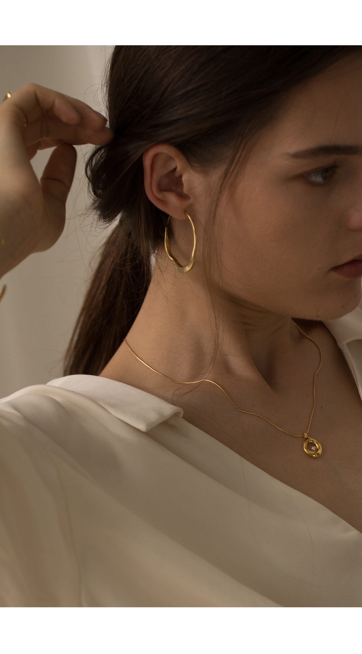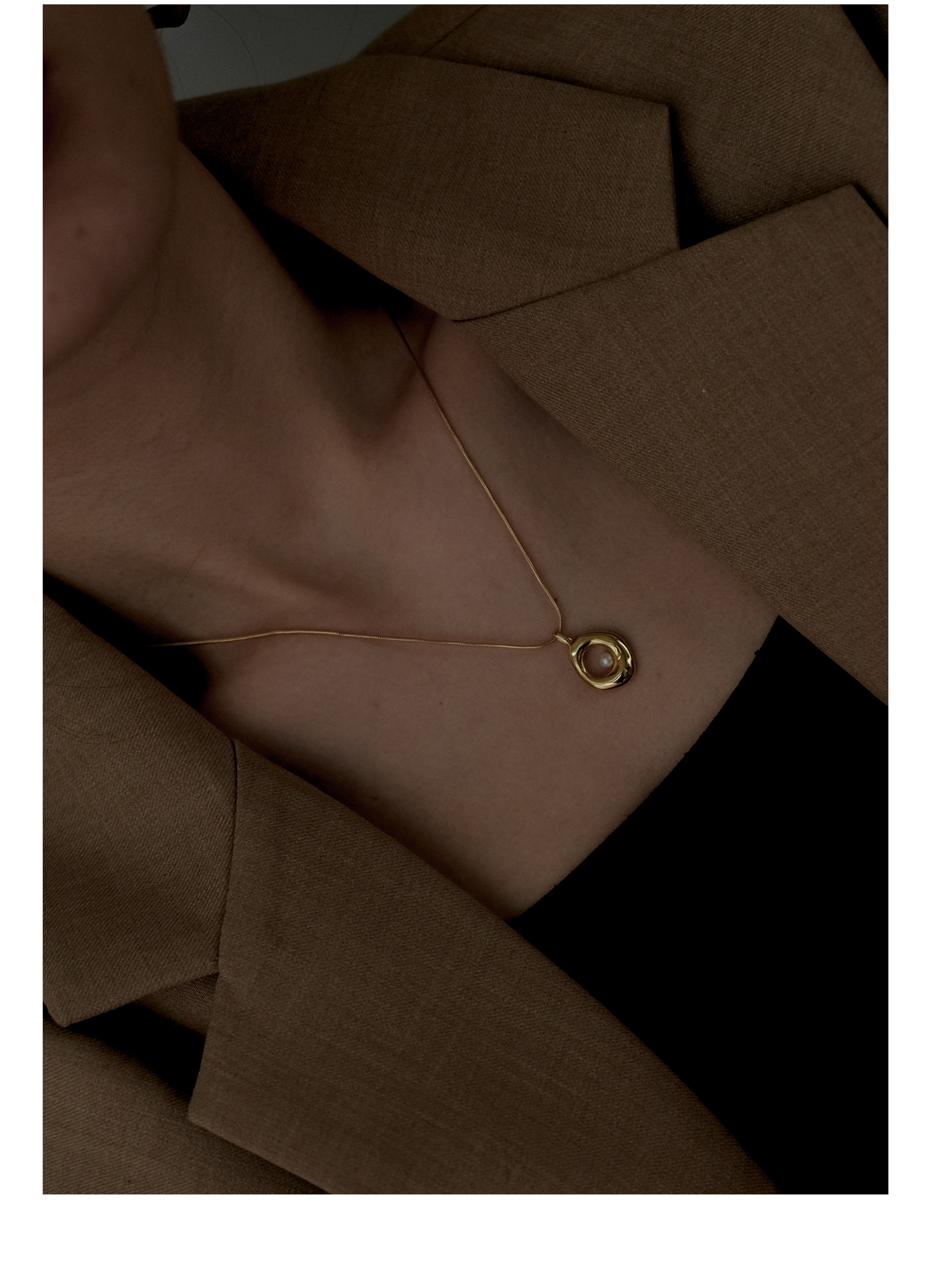 Collana da donna con ciondolo rotondo irregolare a forma di serpente in oro con catena a forma di osso