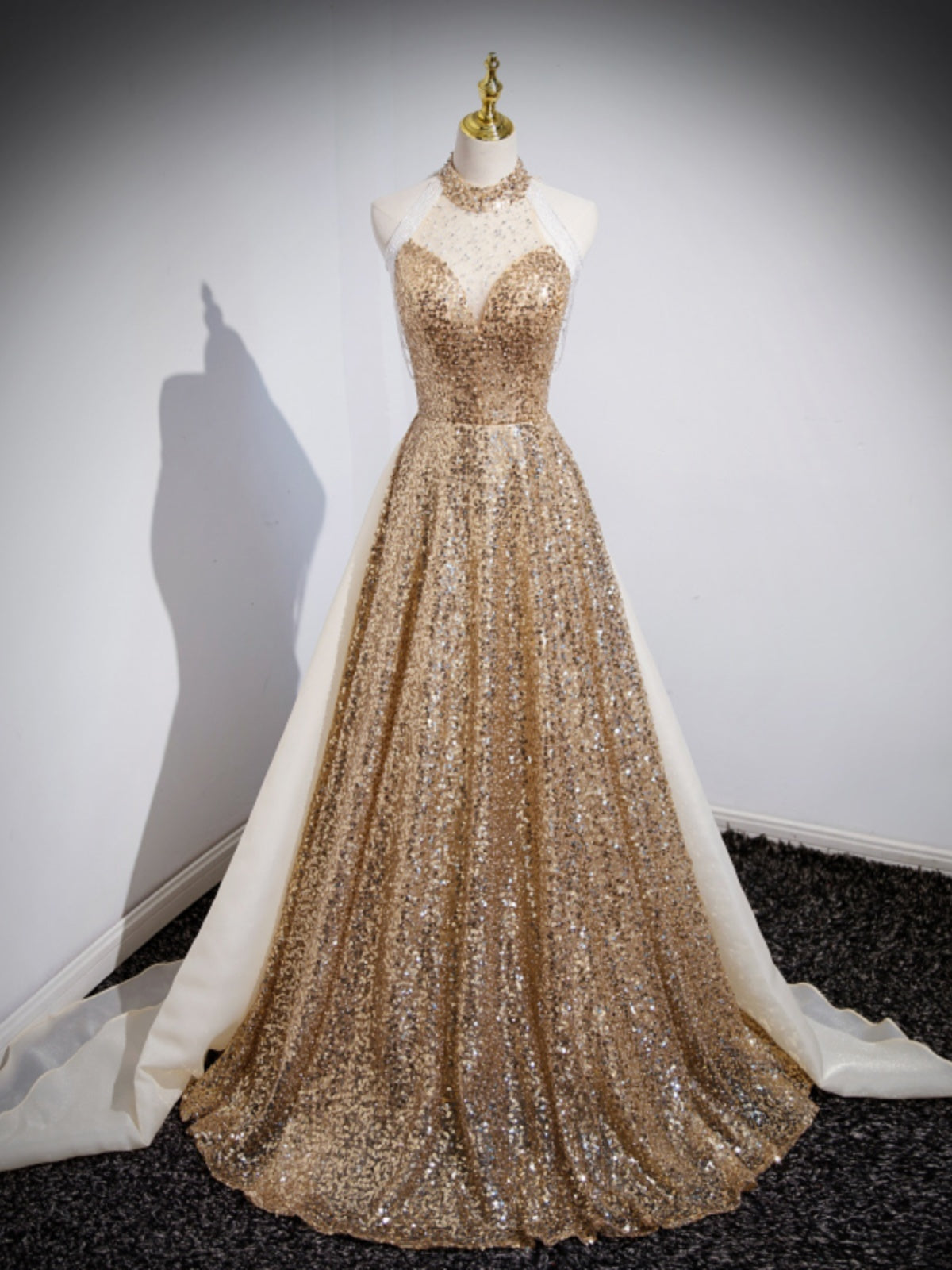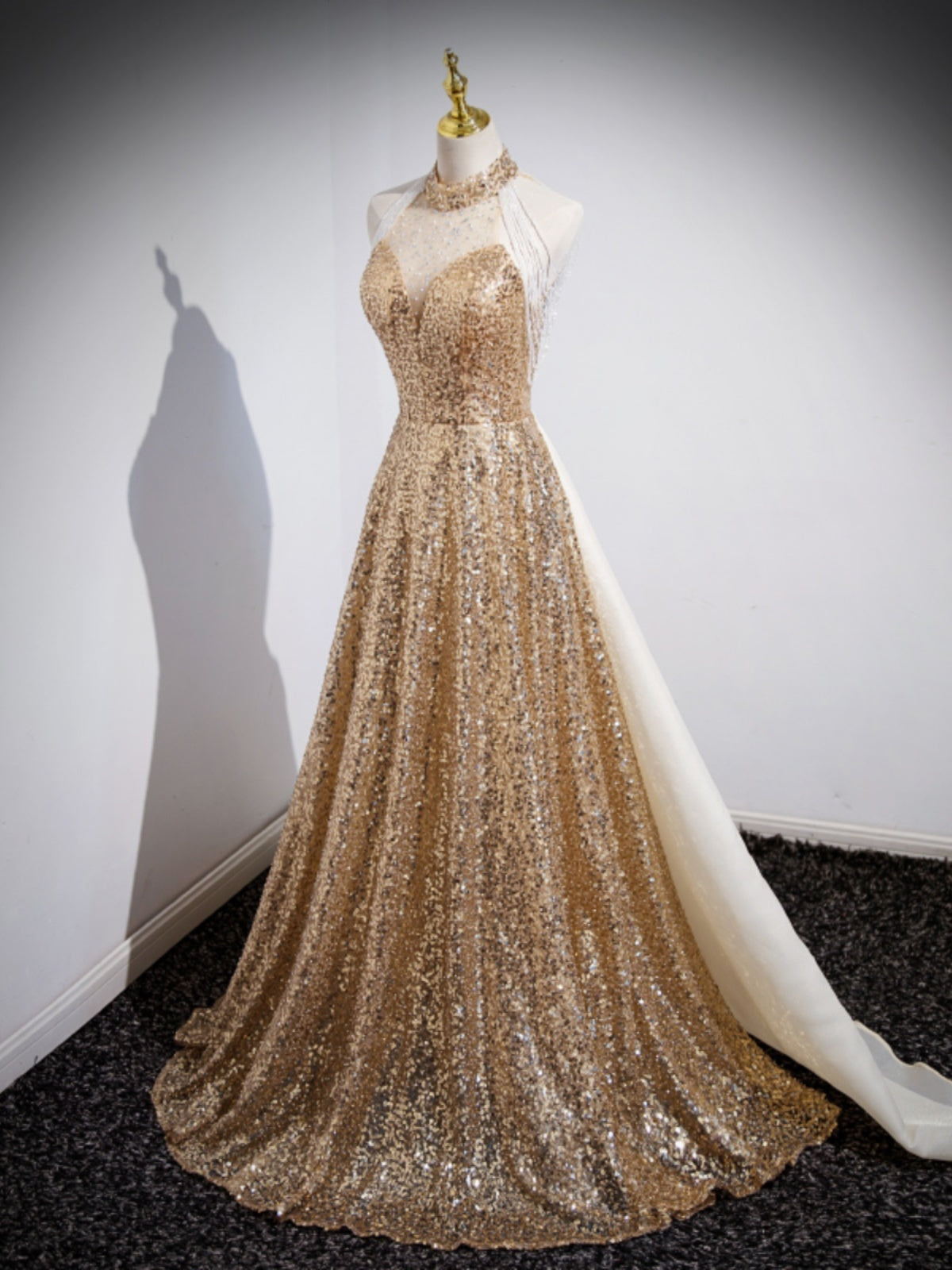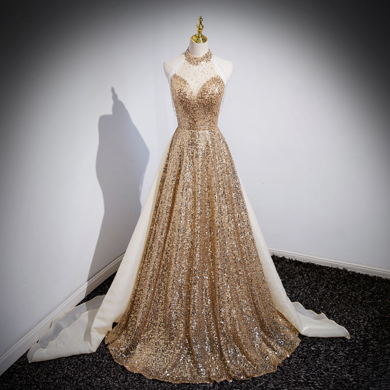 Abito da sera dorato per l'ospite femminile