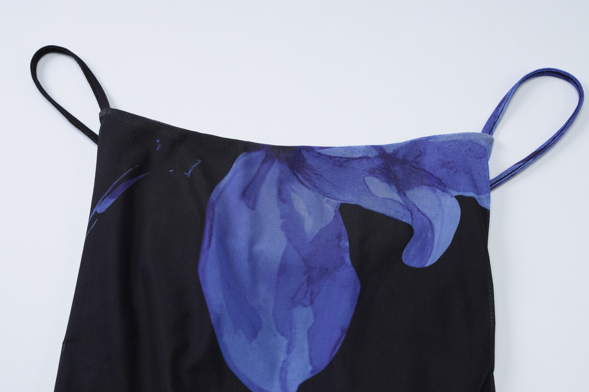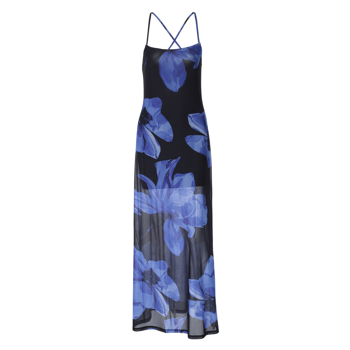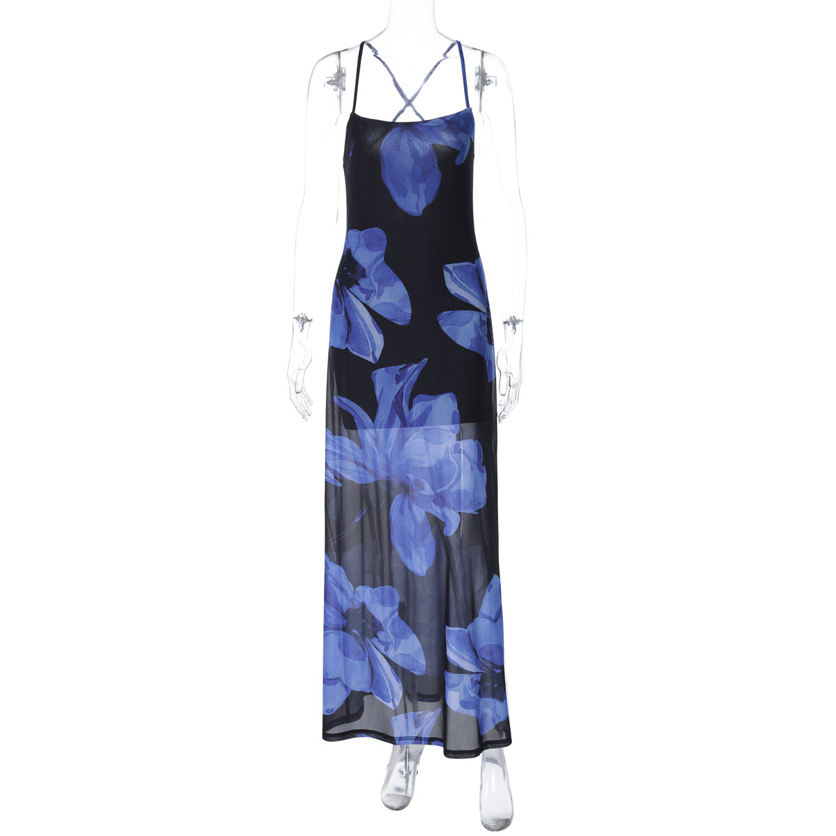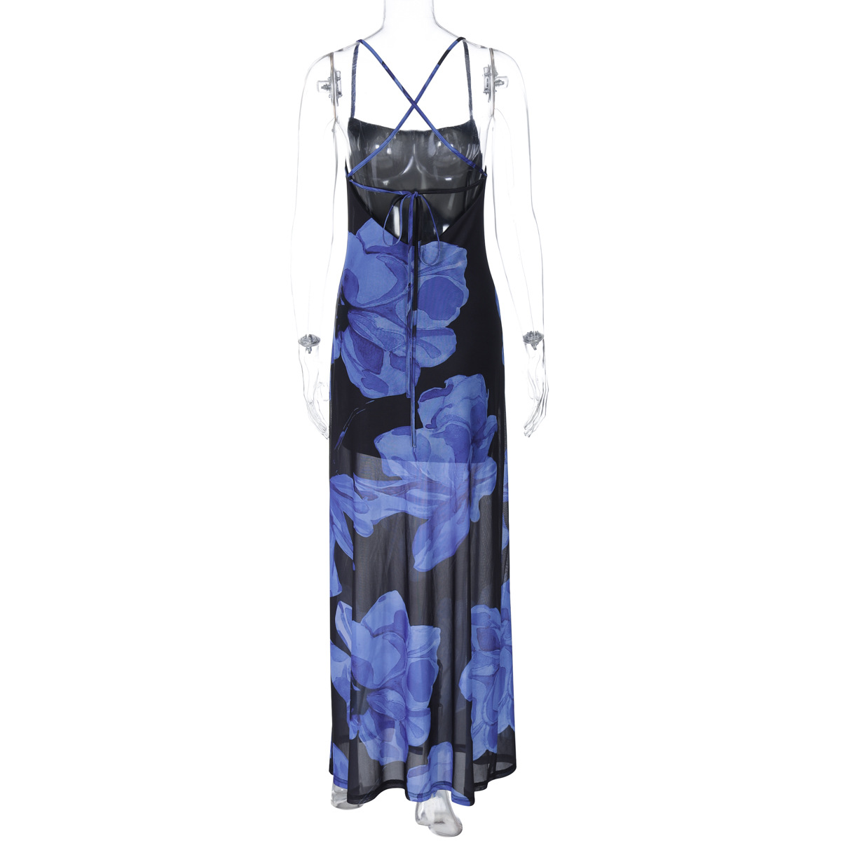 Abito lungo con stampa floreale in rete e spalline regolabili