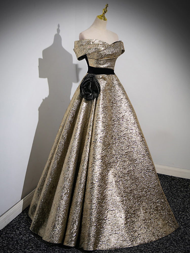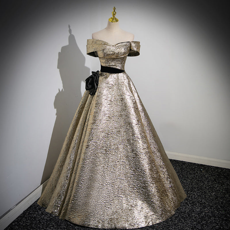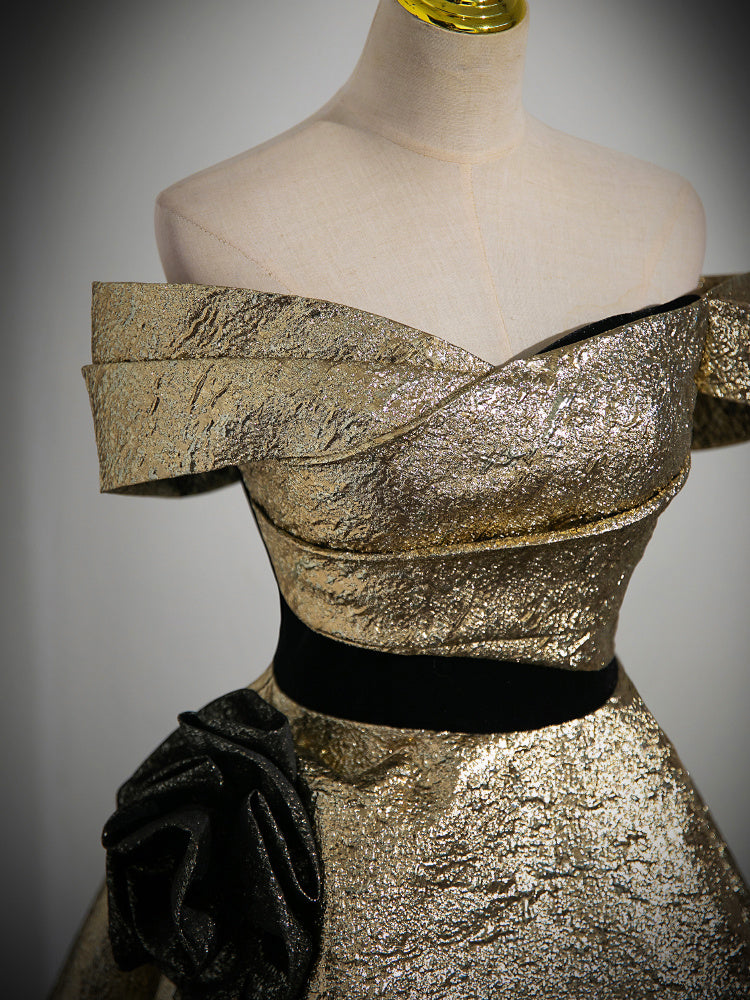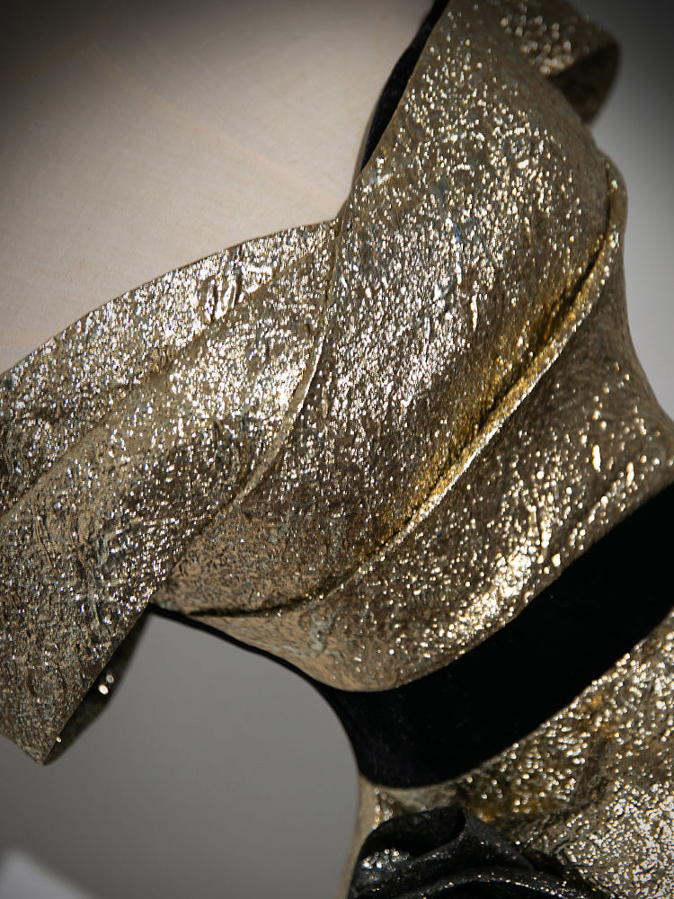 Abito da sera con spalle scoperte color oro per la Host Performance