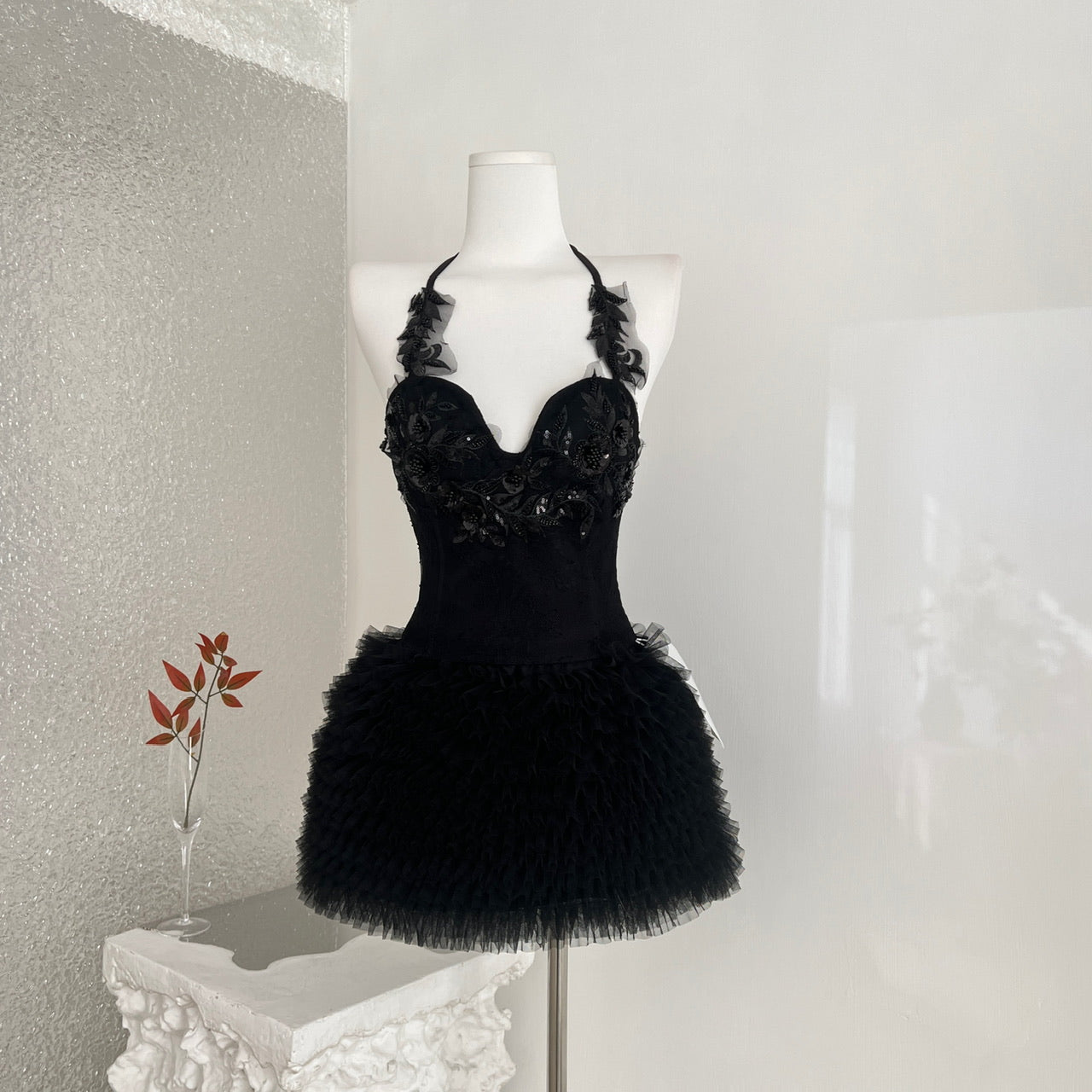 Lace Heavy Embellished Mesh Beaded Sequin Top & Skirt Set Women's Two-Piece