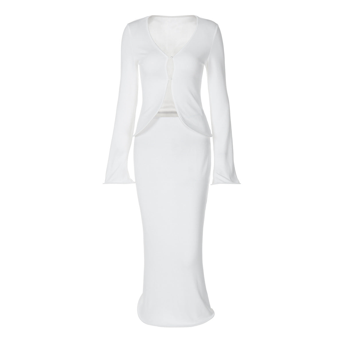 Long Sleeve Cardigan Top Slim Fit Bud Side Package Hip Skirt Suit