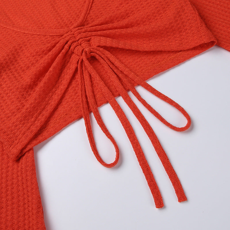Long Sleeve V-neck Drawstring Skirt Suit Sexy Slim Fit