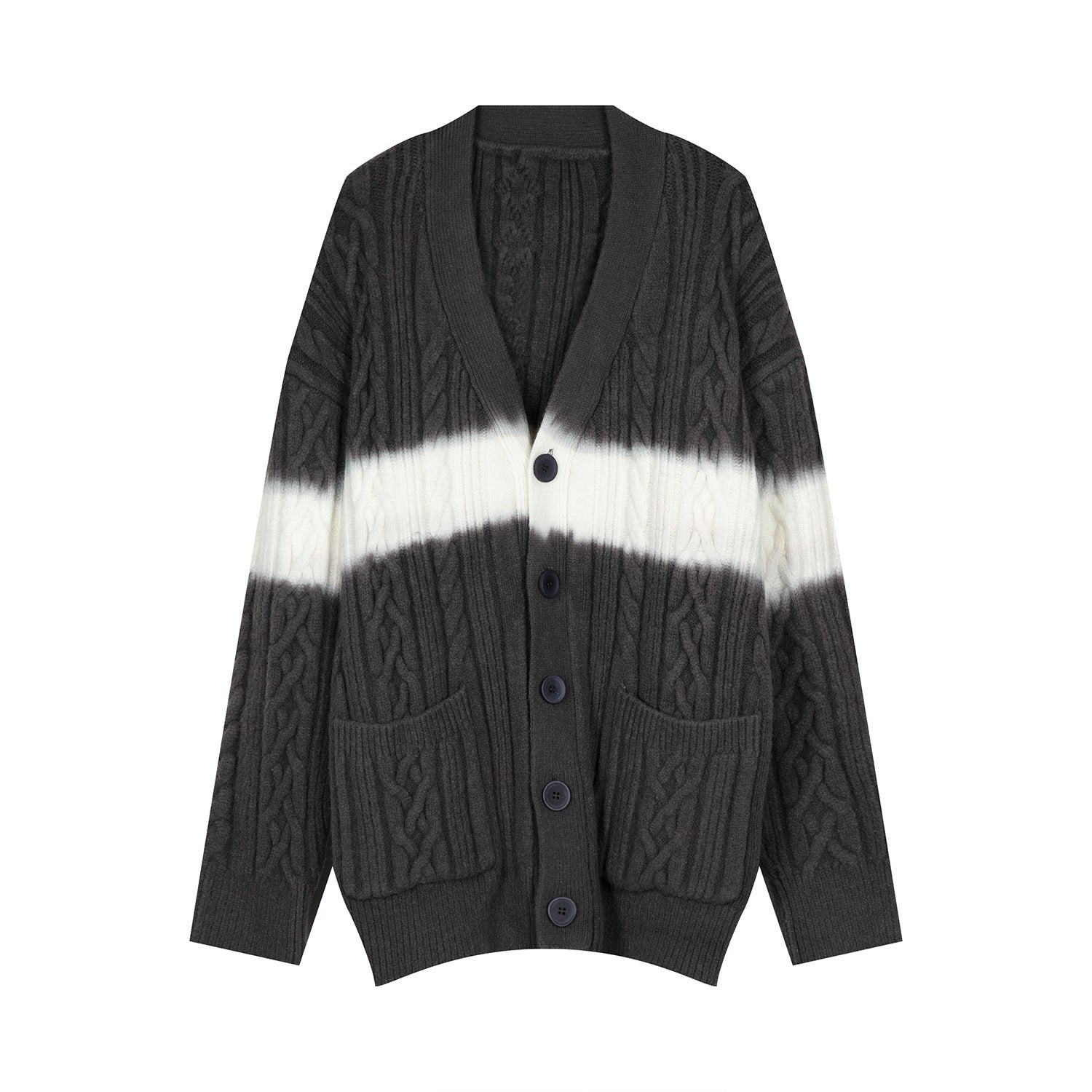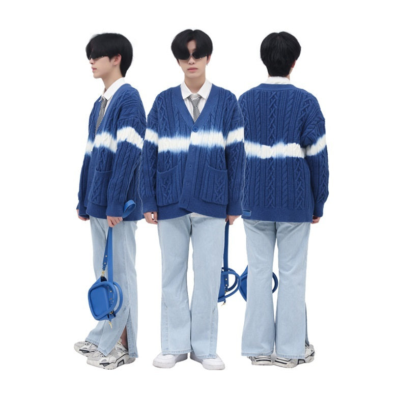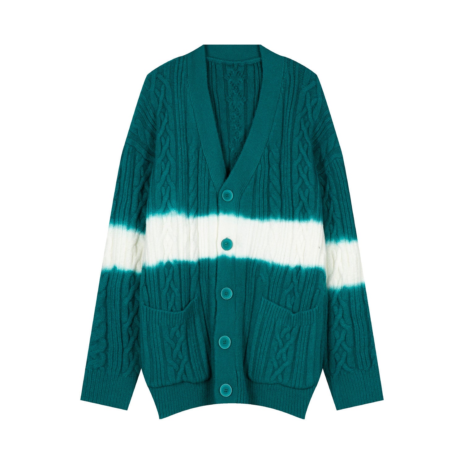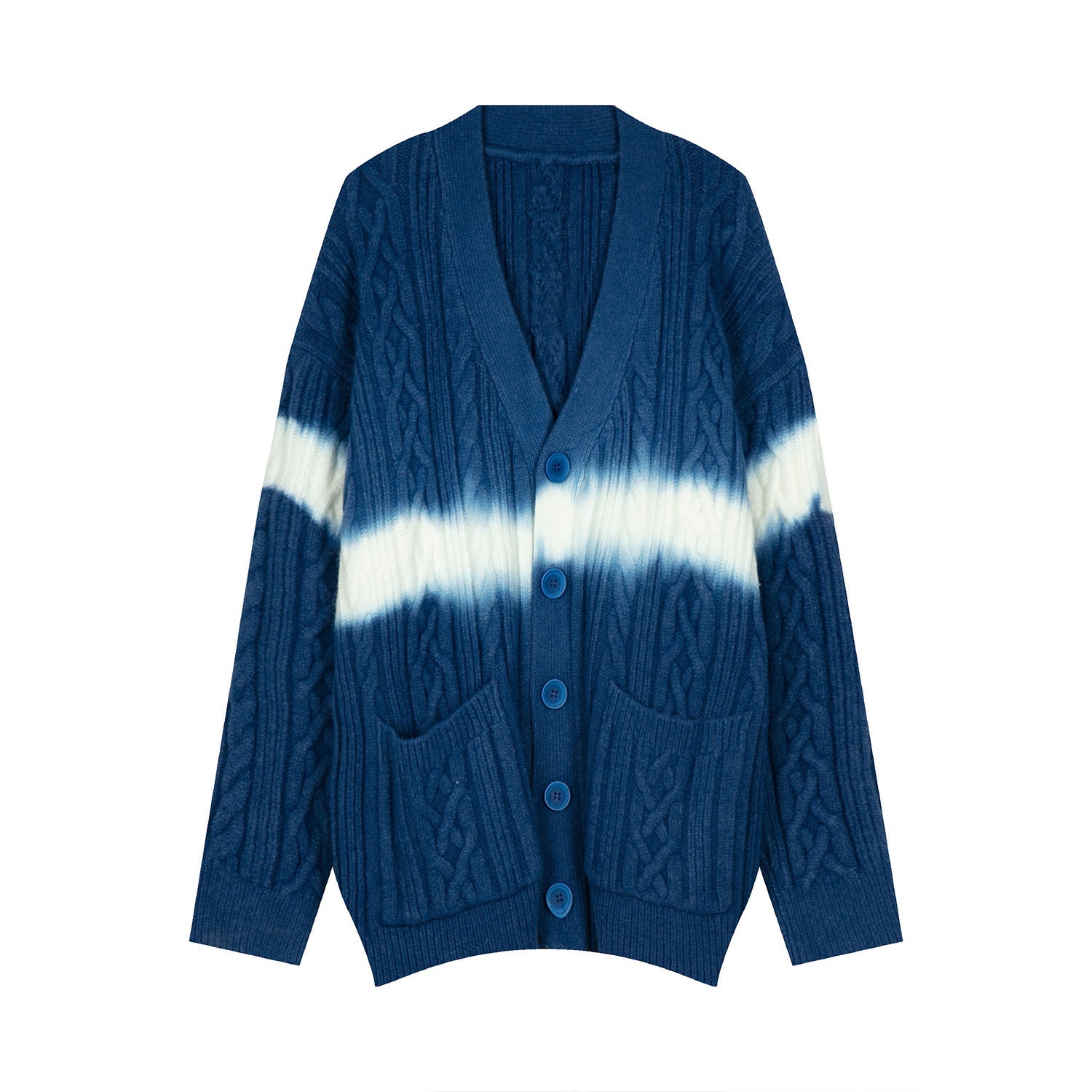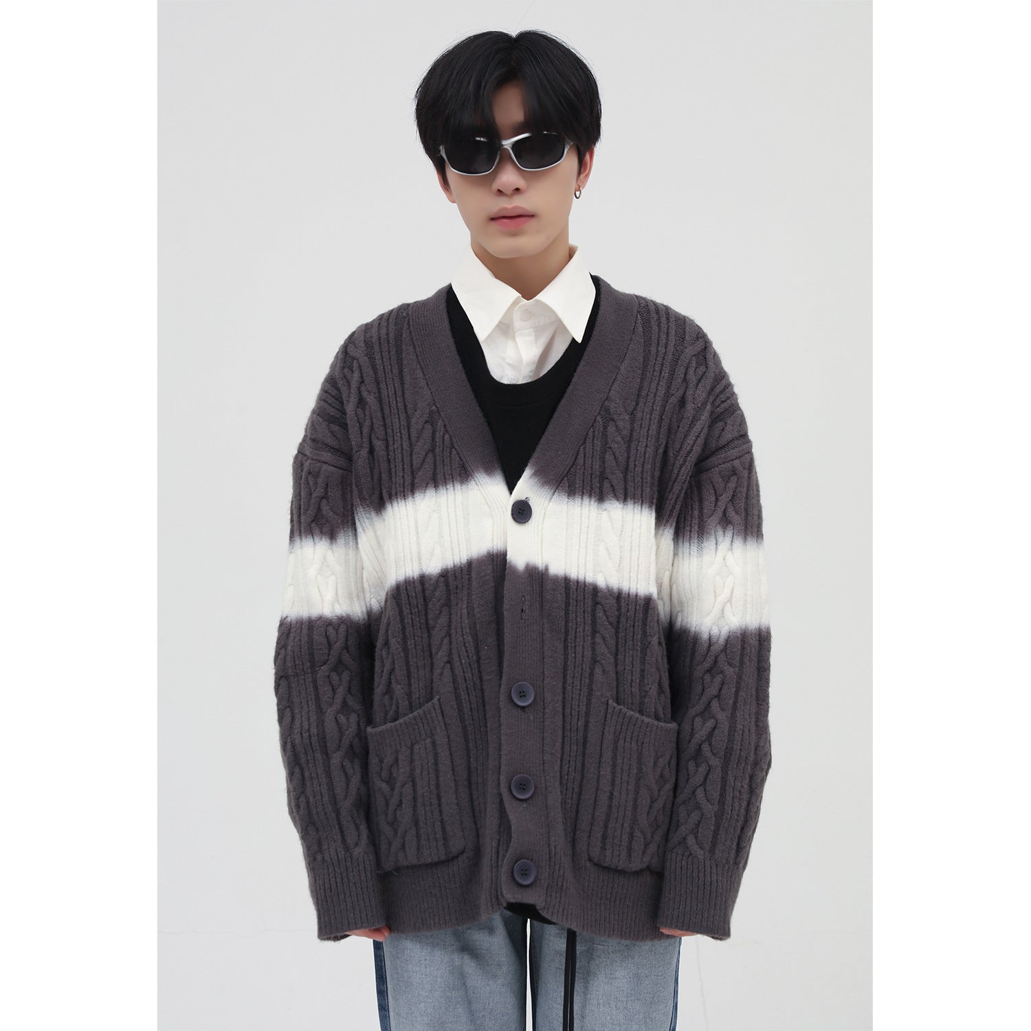 Loose And Lazy Style V-neck Thickening Tie-dyed Knitted Cardigan For Men