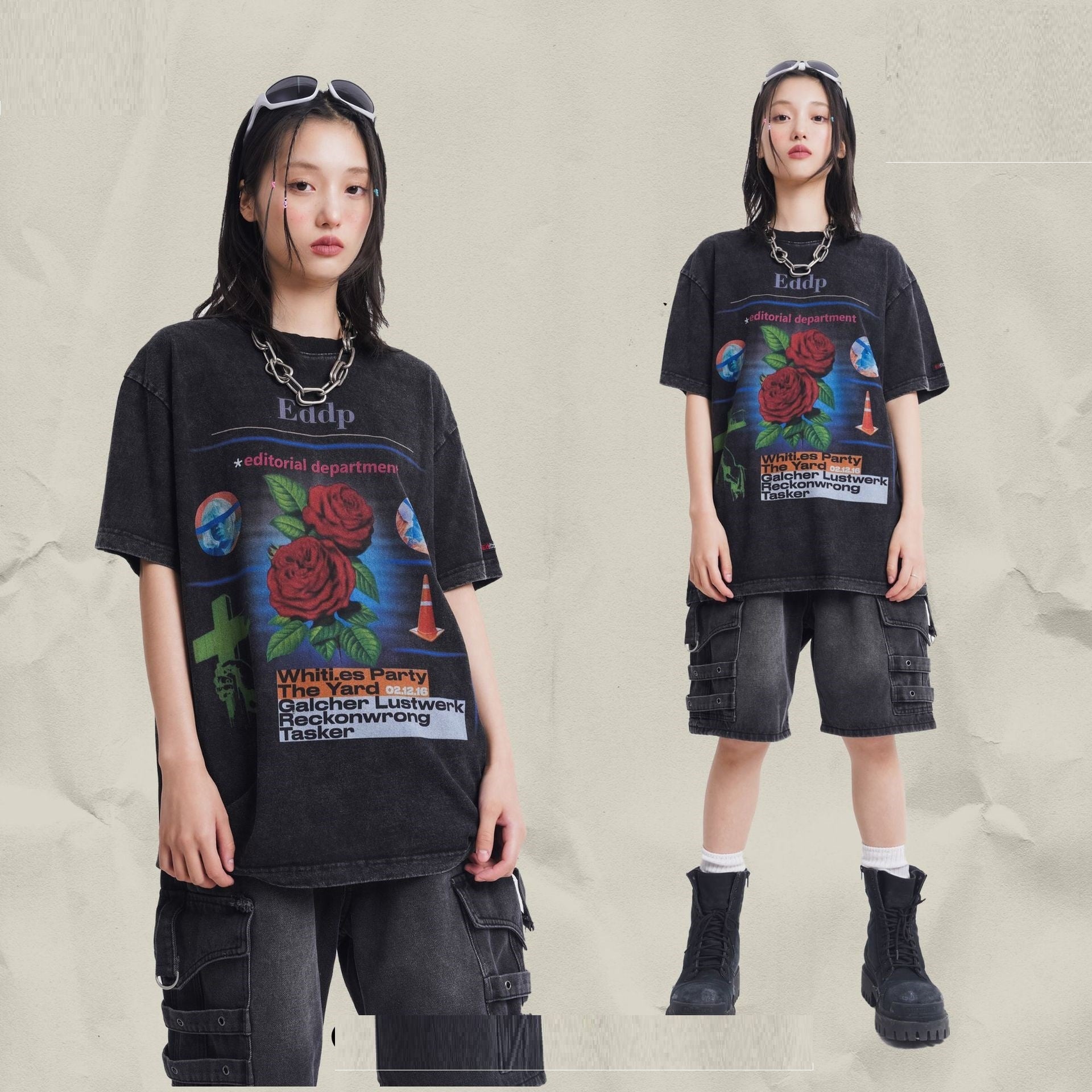 Loose Round Neck Fashion Original Design Washed T-shirt