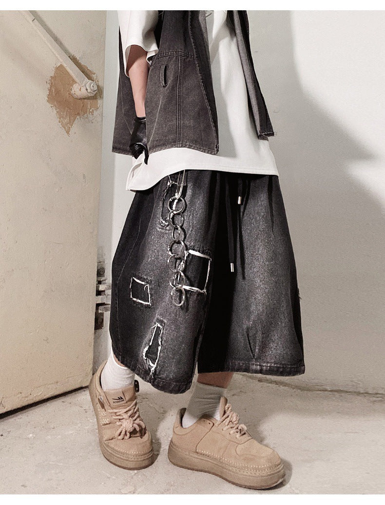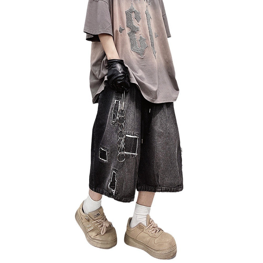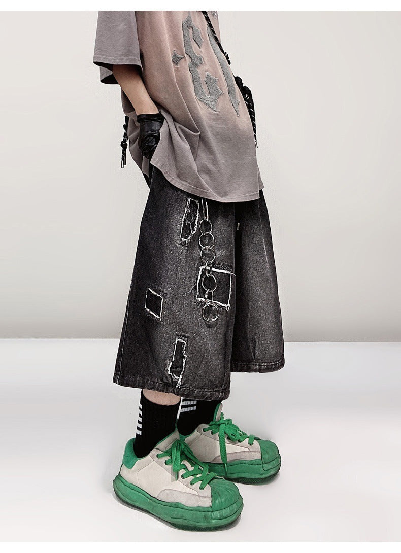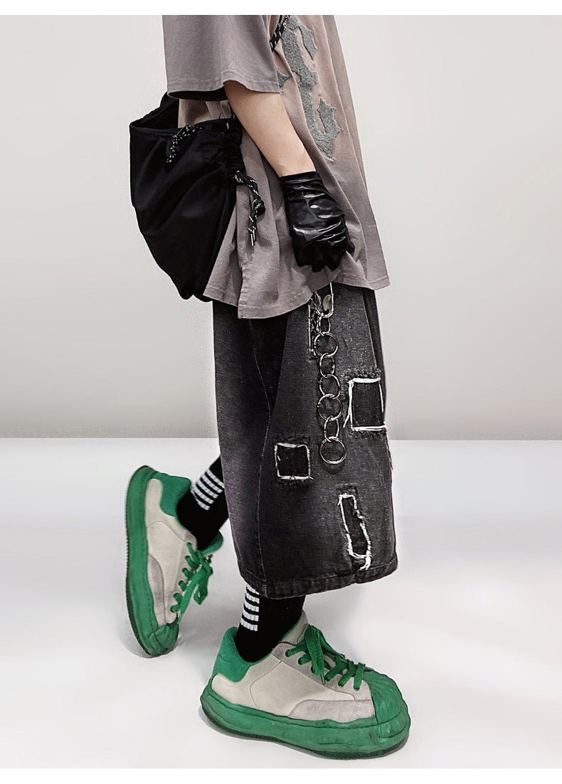 Pantaloncini corti vintage estivi in denim a gamba larga con toppe vintage