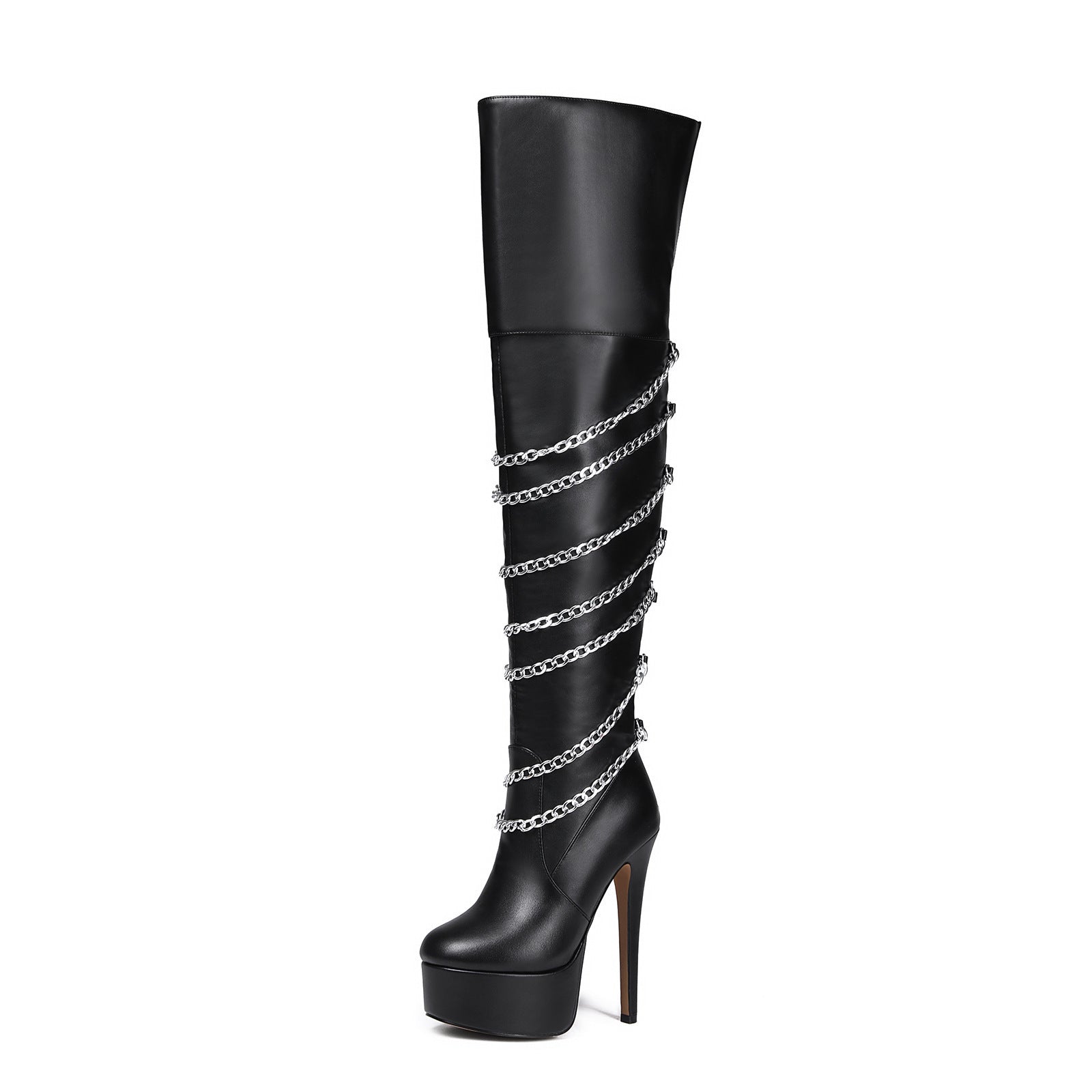 Metal Pointed Hot Girl Below The Knee Knight Boots High Heel