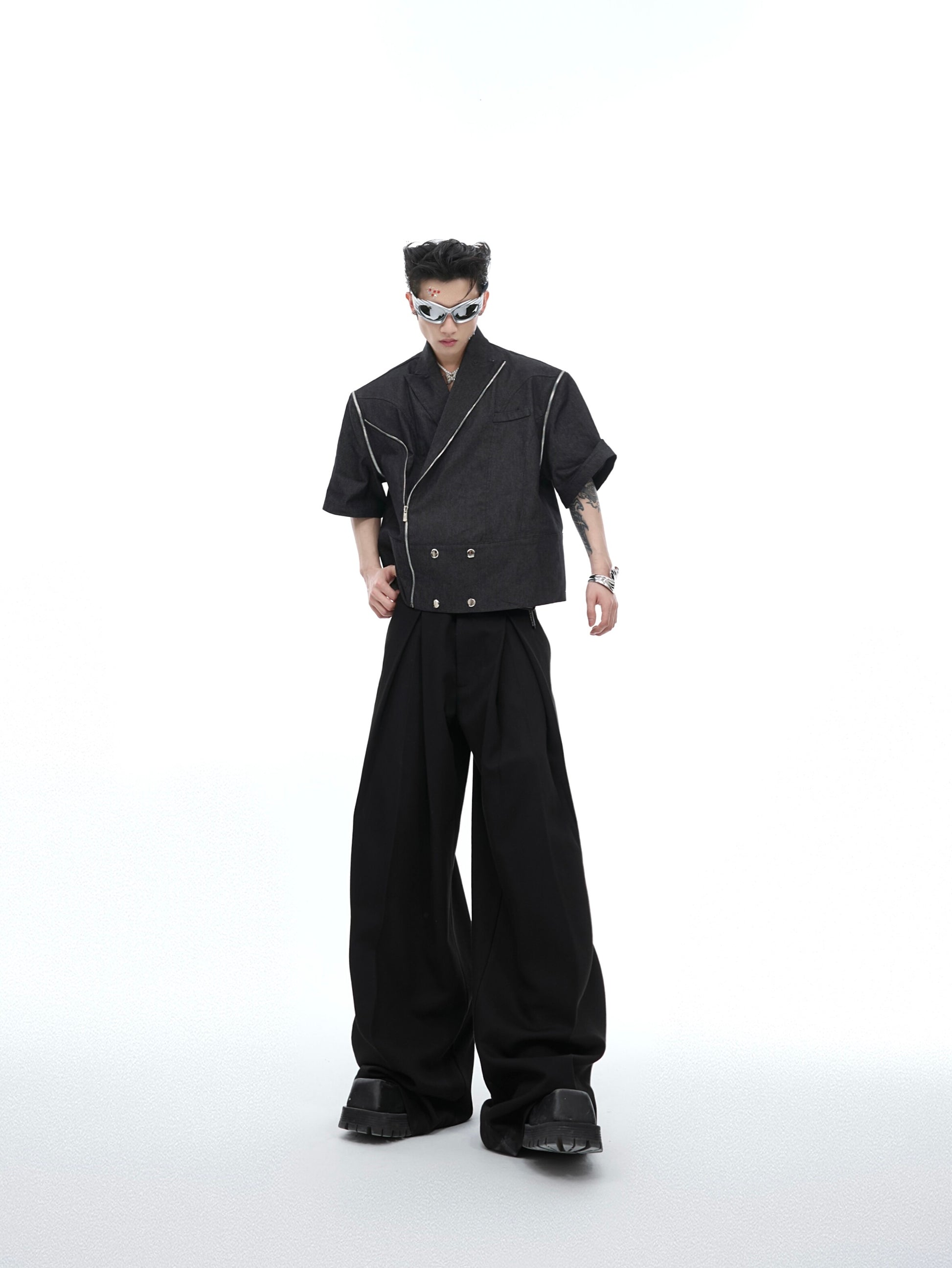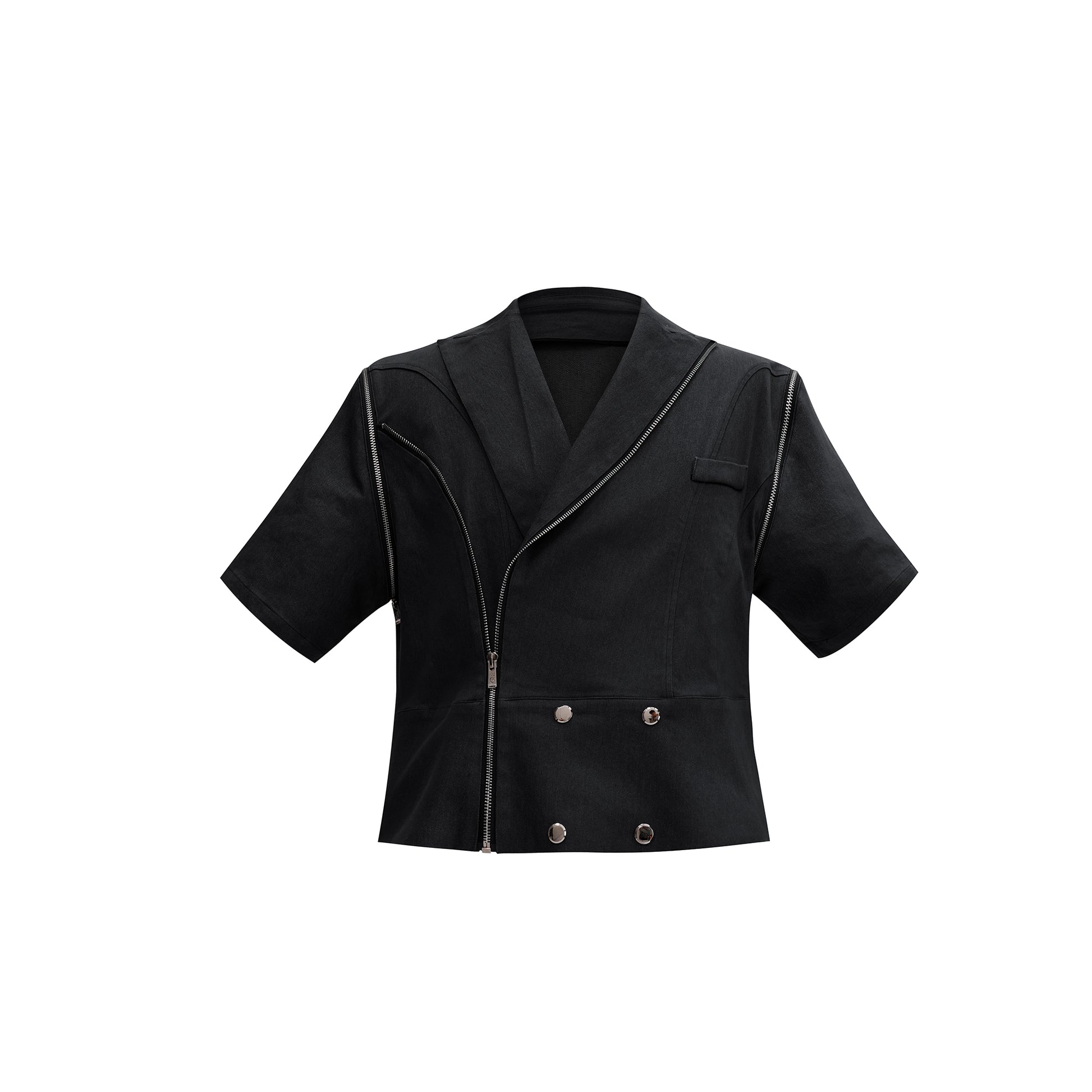 Metal Zipper Detachable Short Sleeve Denim Coat
