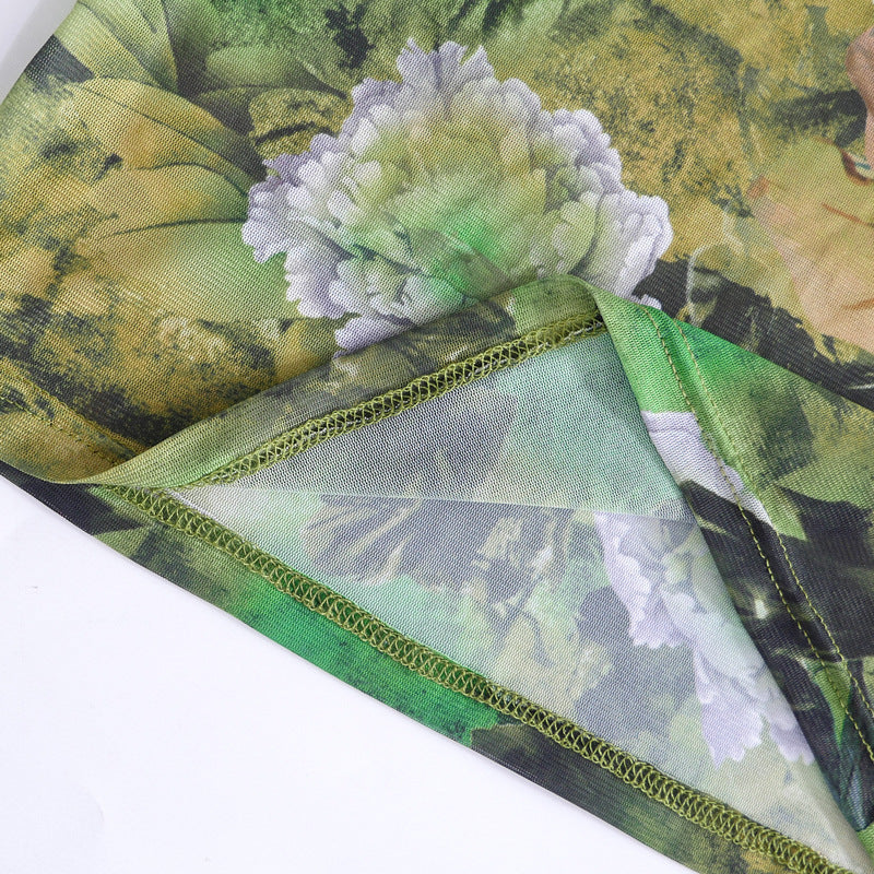 New Fashion Mesh Printed Tight Top And Trousers Casual Suit
