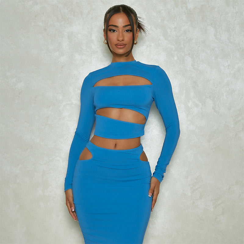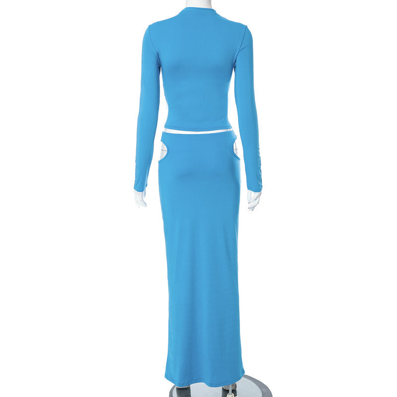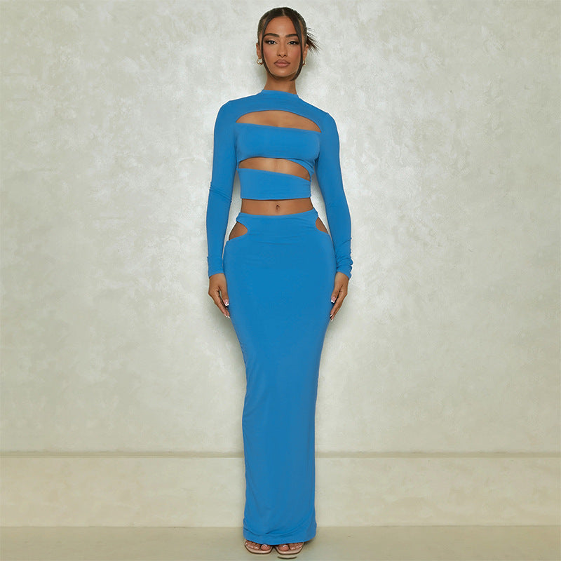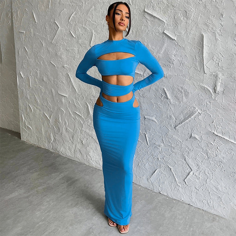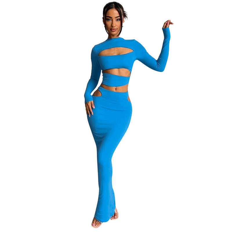 Gonna a maniche corte con foro di fiori in fiamme, nuova tinta unita, abito casual