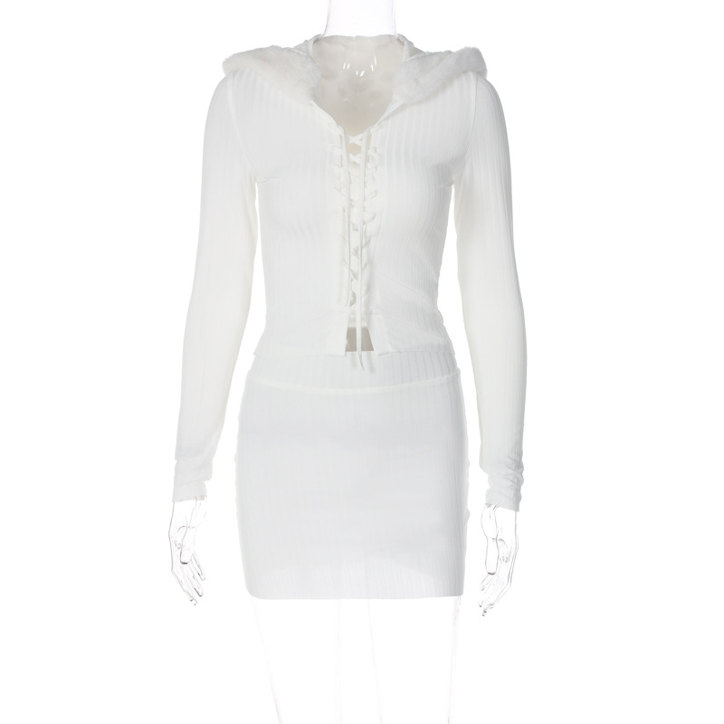 Plush Hooded Top Skirt Fashion Suit