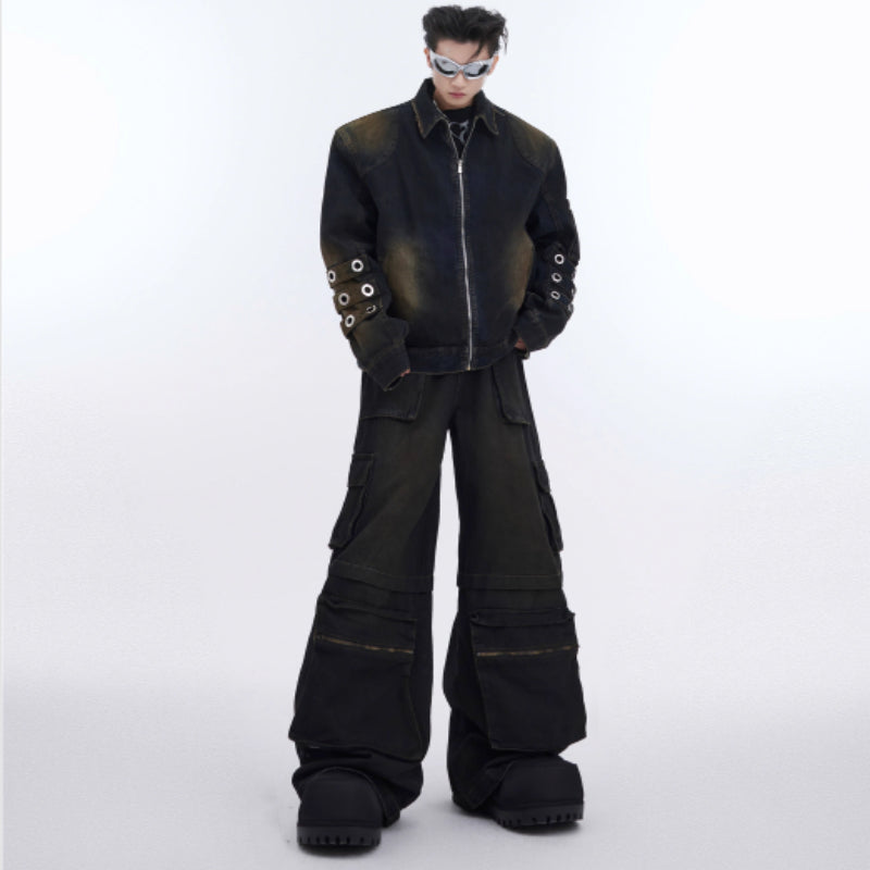 Retro Do The Old Cowboy Coat Zipper Large Pocket Overalls