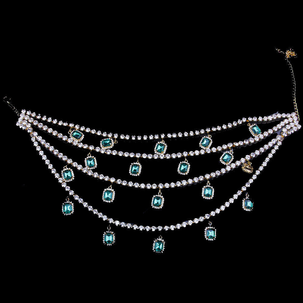 Retro Exaggerated Hip Hop Multilayer Rhinestone Pendant Necklace