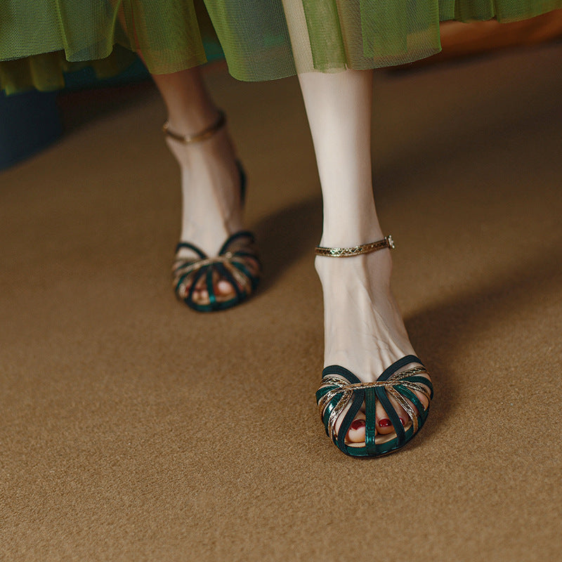 Retro Literary Woven Flat Toe Roman Women's Shoes