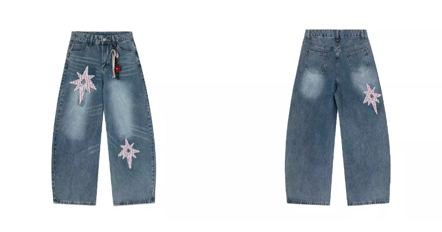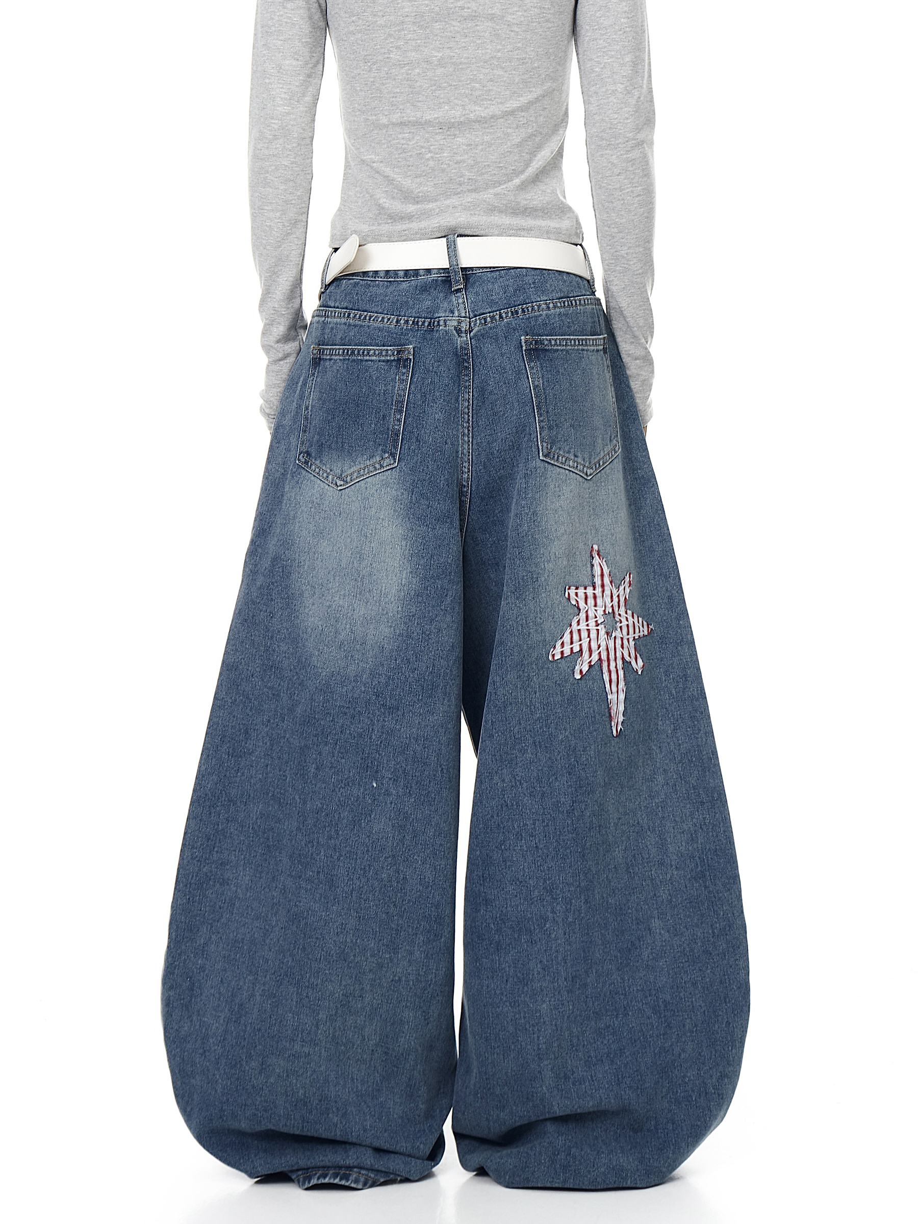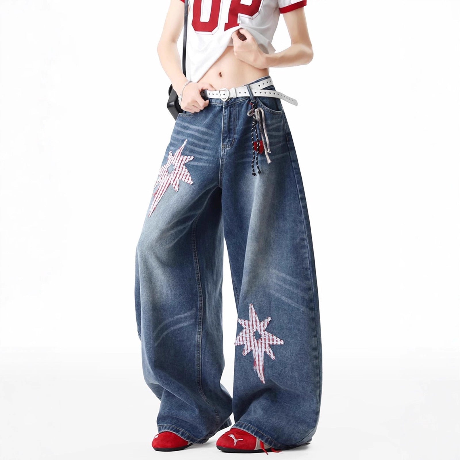 Retro Patch Machete Jeans Loose Wide Leg Pants