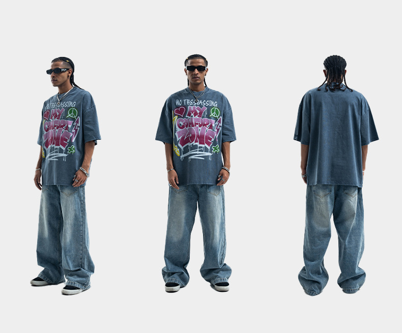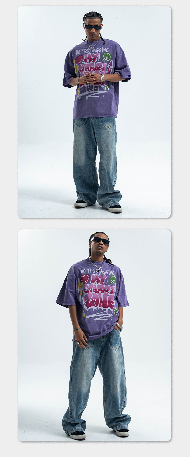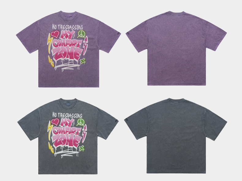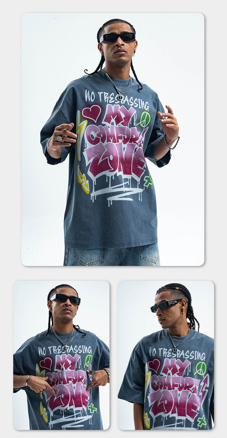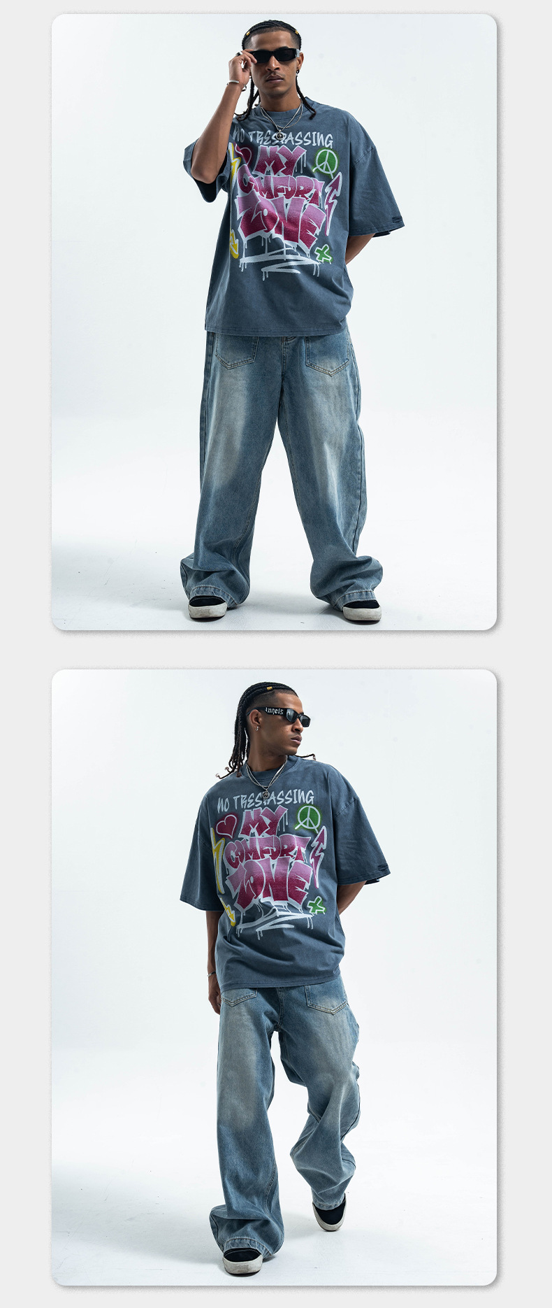Retro Washed Dyed Distressed Letter Print Short-sleeve T-shirt