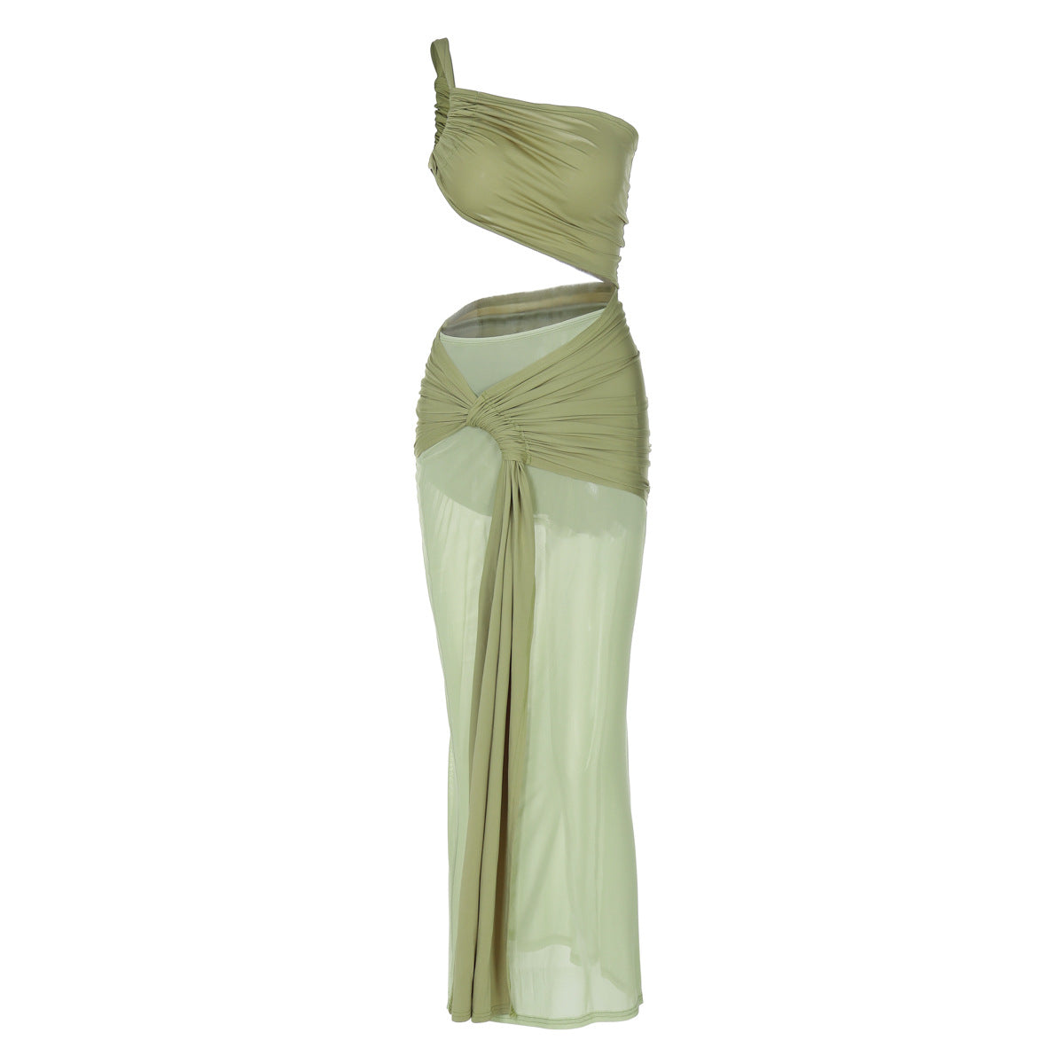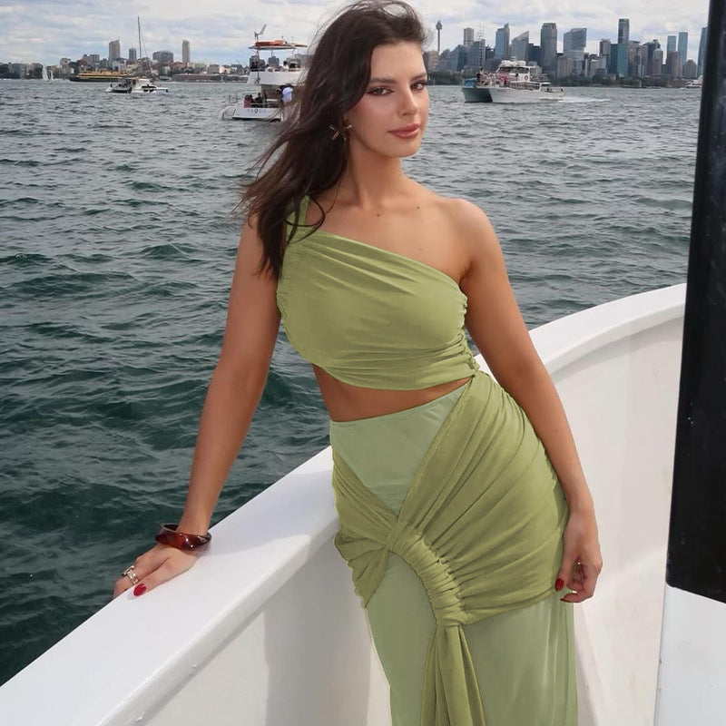 Completo sexy con gonna obliqua aderente e top senza spalline
