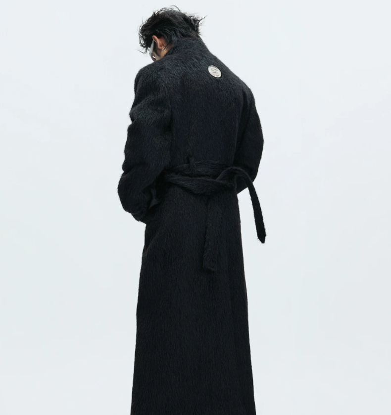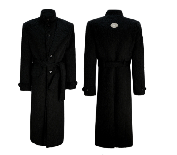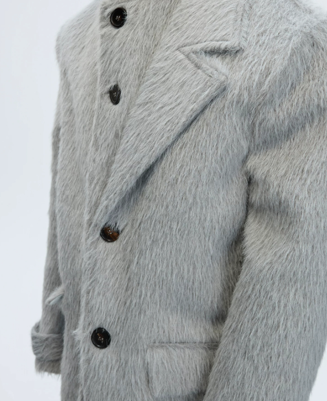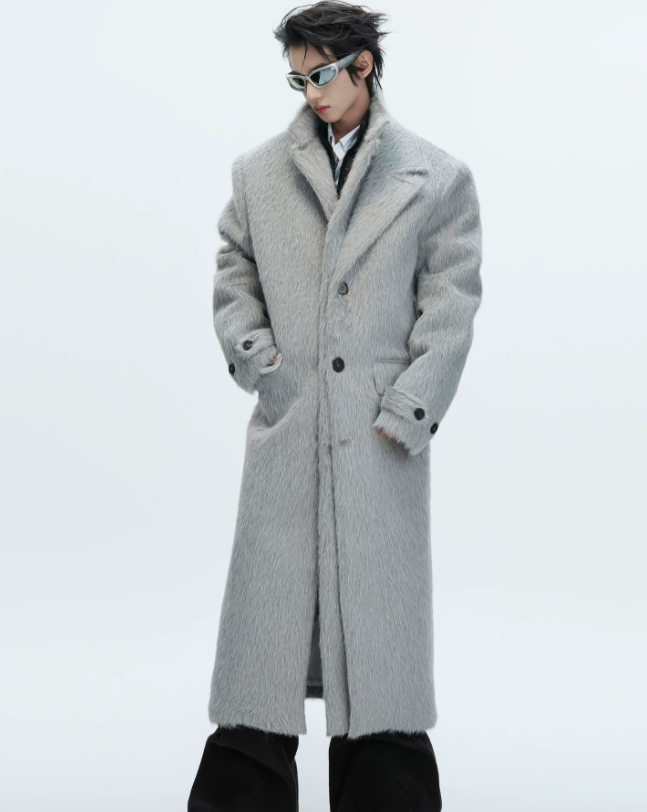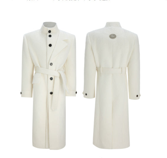 Short-pile Faux Two-piece Wool Coat Long Alpaca-blend Trench Coat