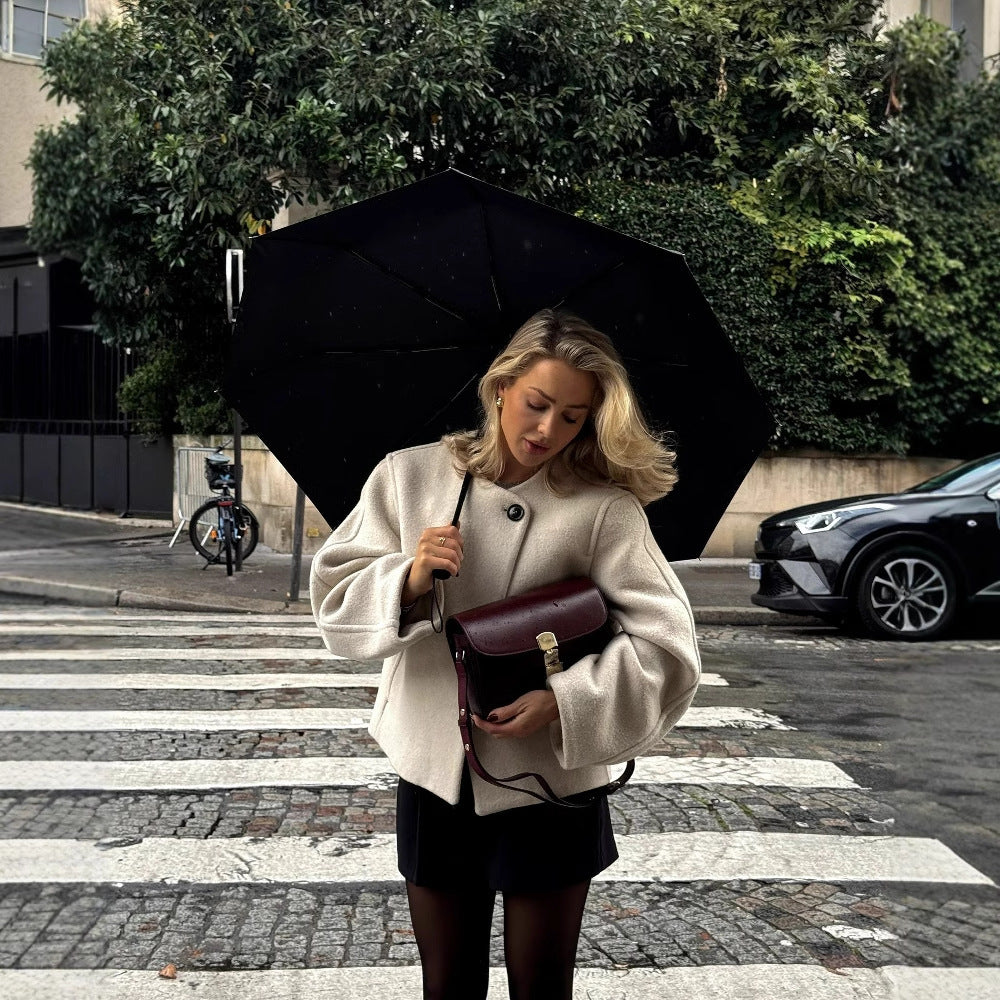 Square Collar Padded Woolen Coat