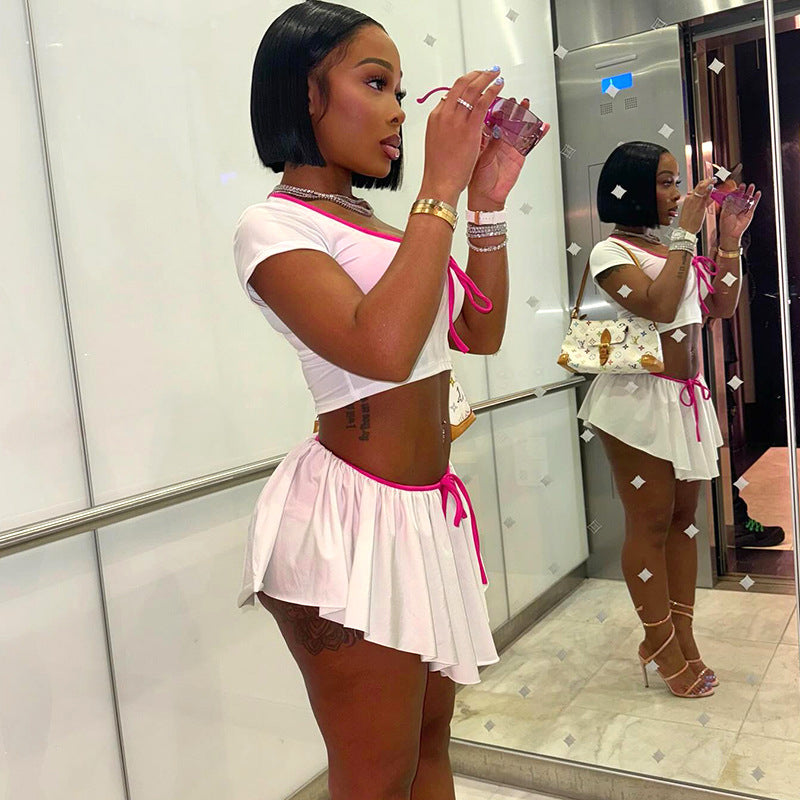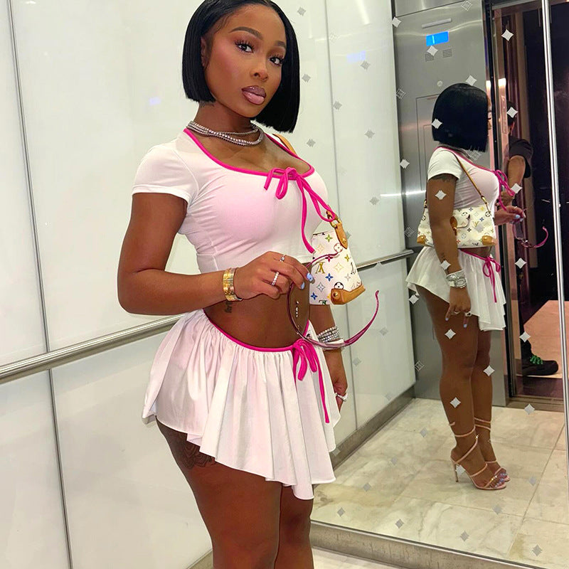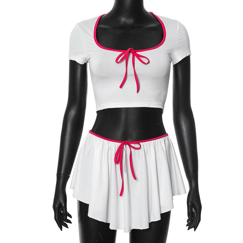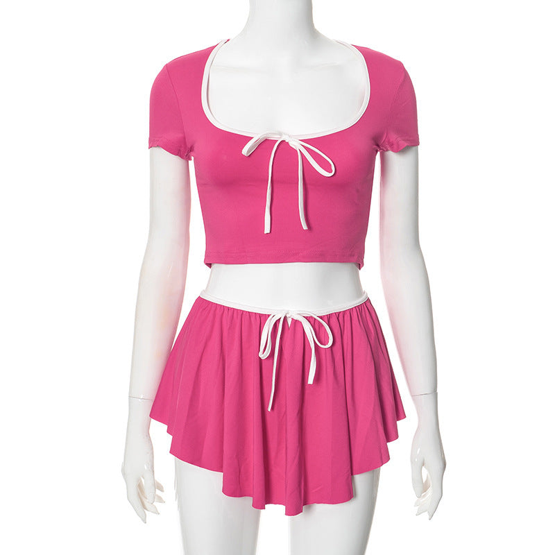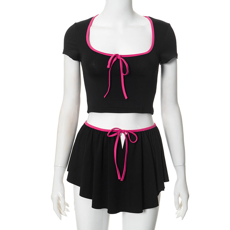 Completo gonna a vita bassa slim fit con scollo quadrato e maglietta