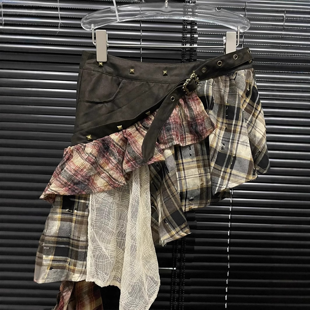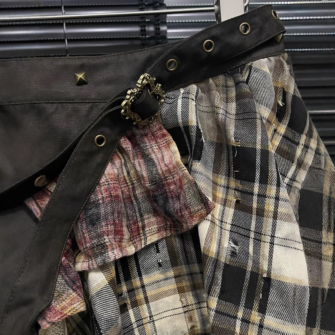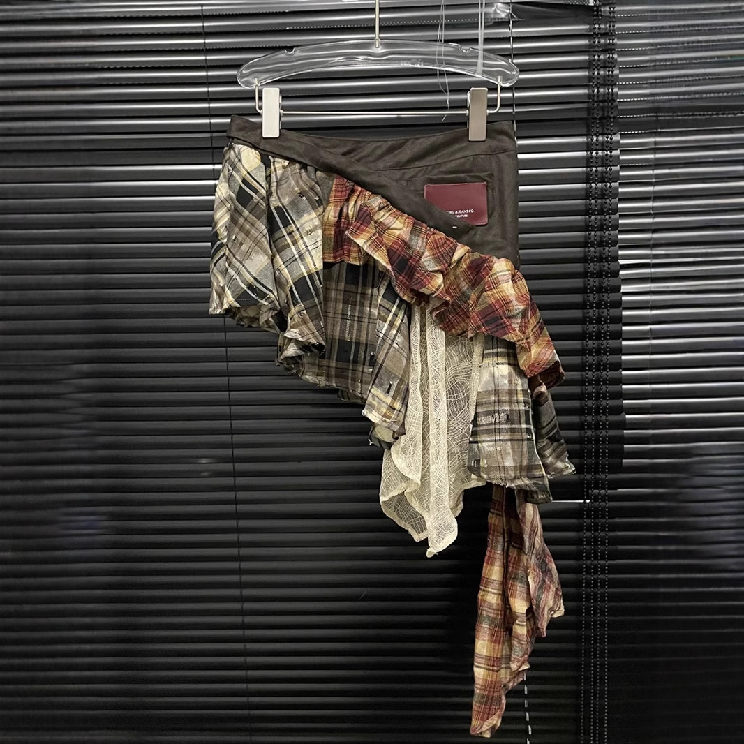 Gonna a quadri con nappe cucite - Gonna irregolare