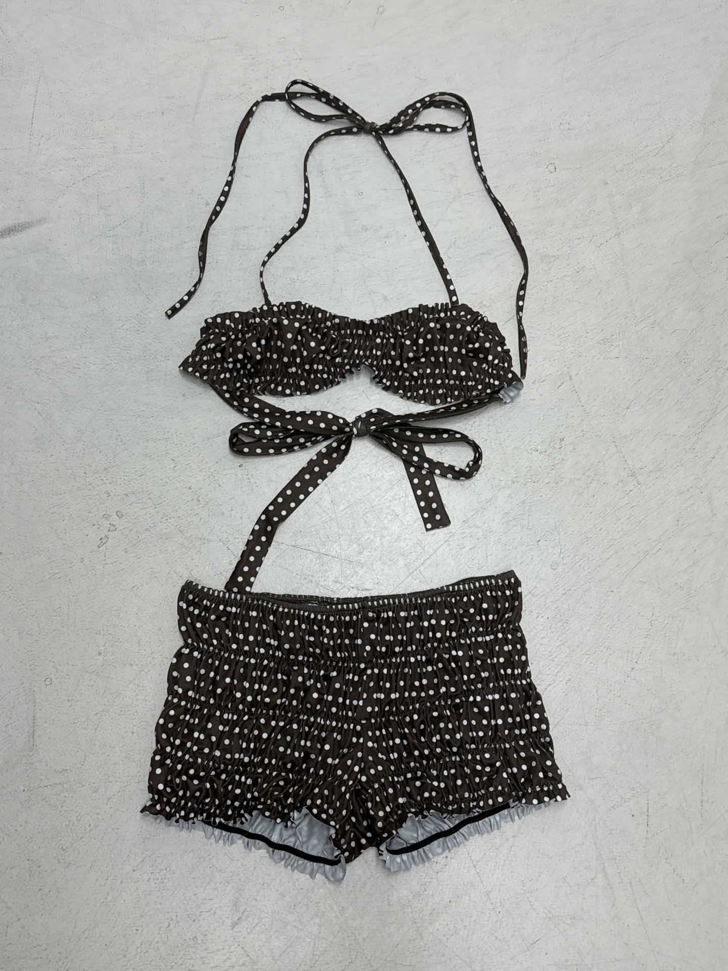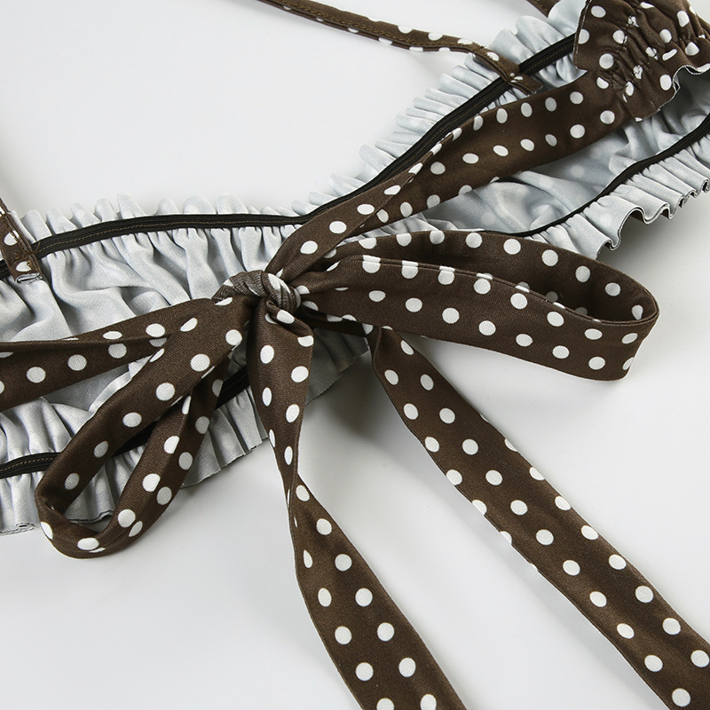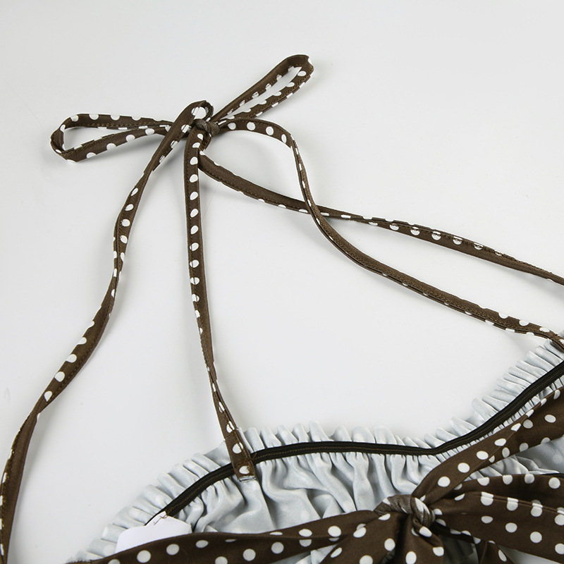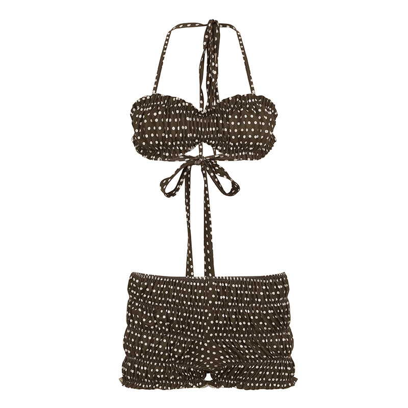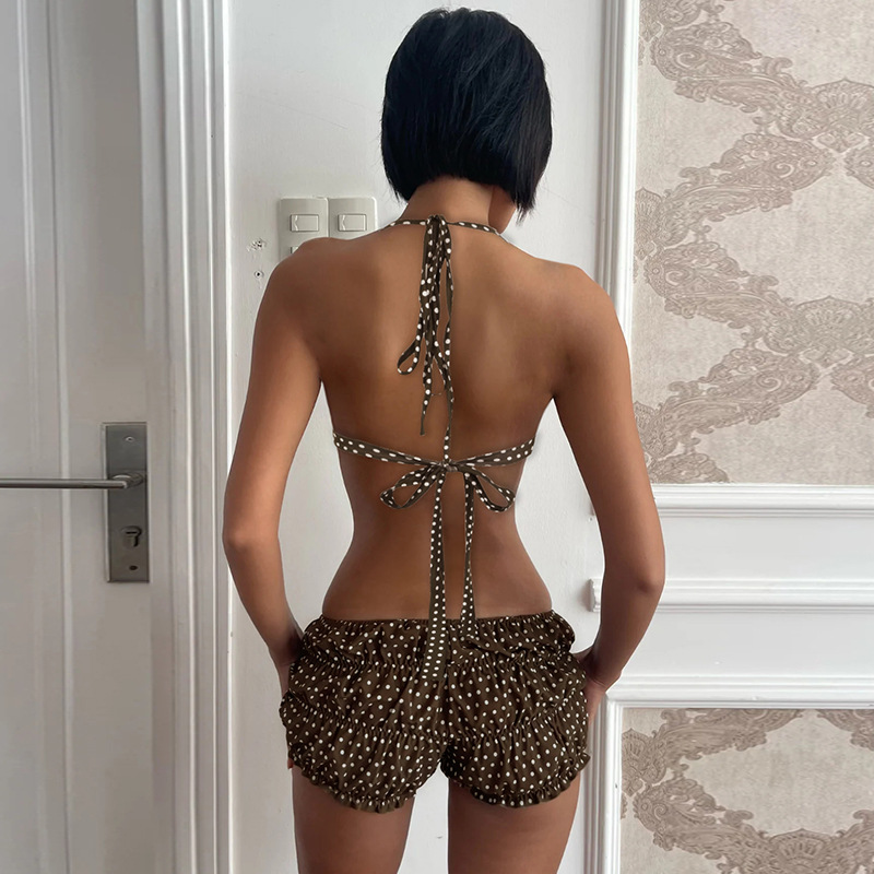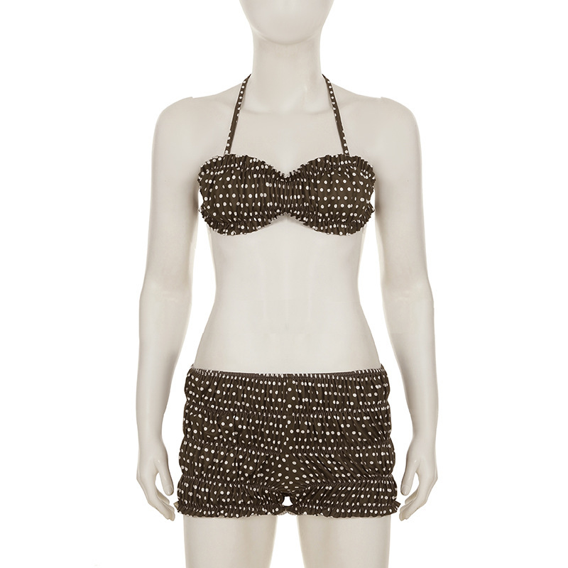 Summer Seaside Vacation Style Sexy Polka Dot Contrast Color Shorts Suit