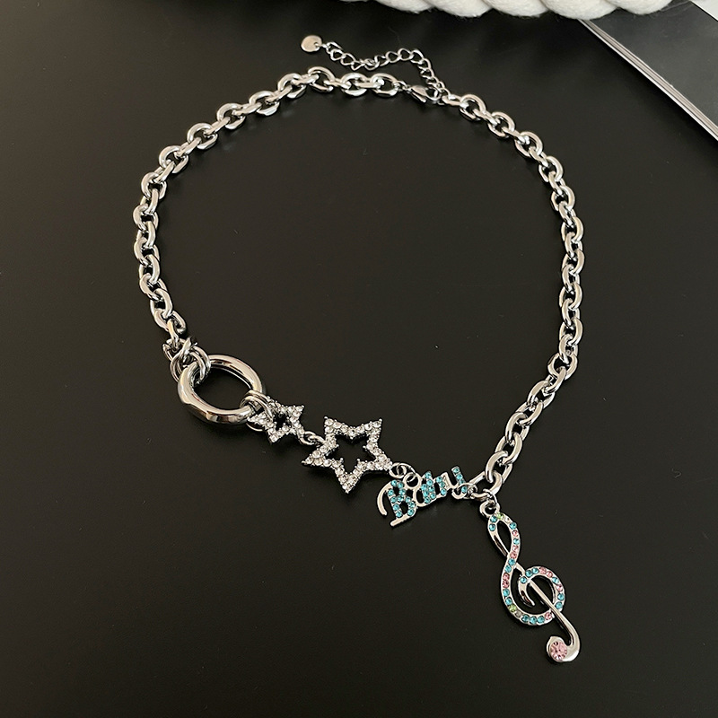 Sweet Cool Personality Note Star Necklace Female Light Luxury Niche Instagram Hip Hop