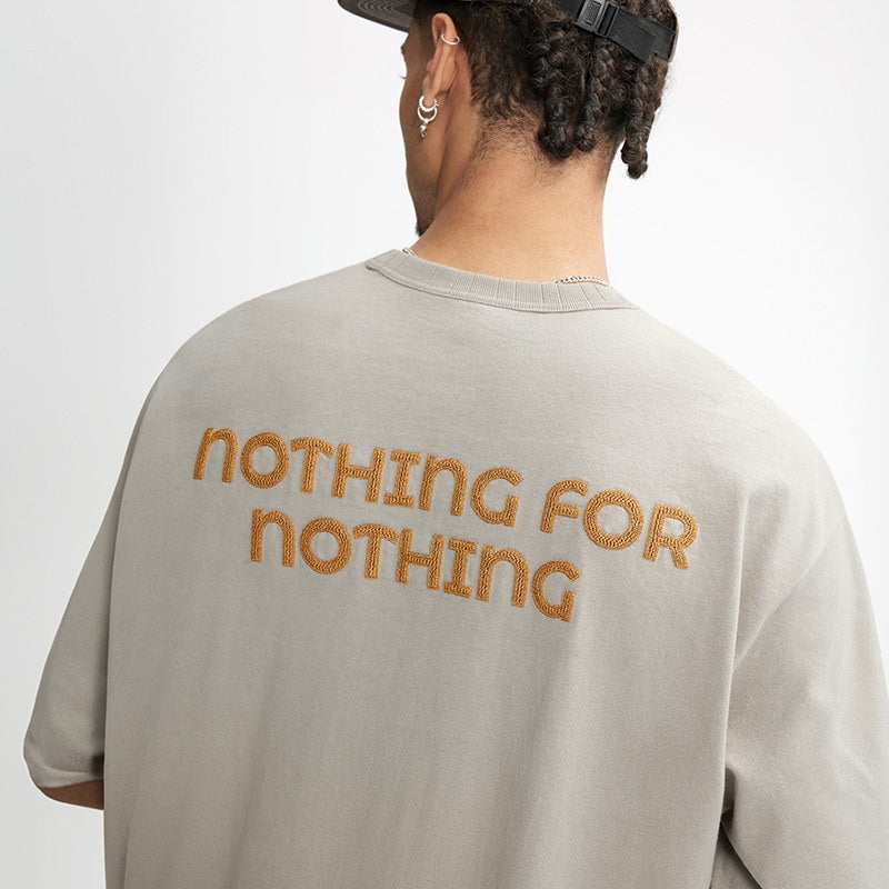 Thread Collar Embroidered T-shirt Retro Heavy Pit Short Sleeve