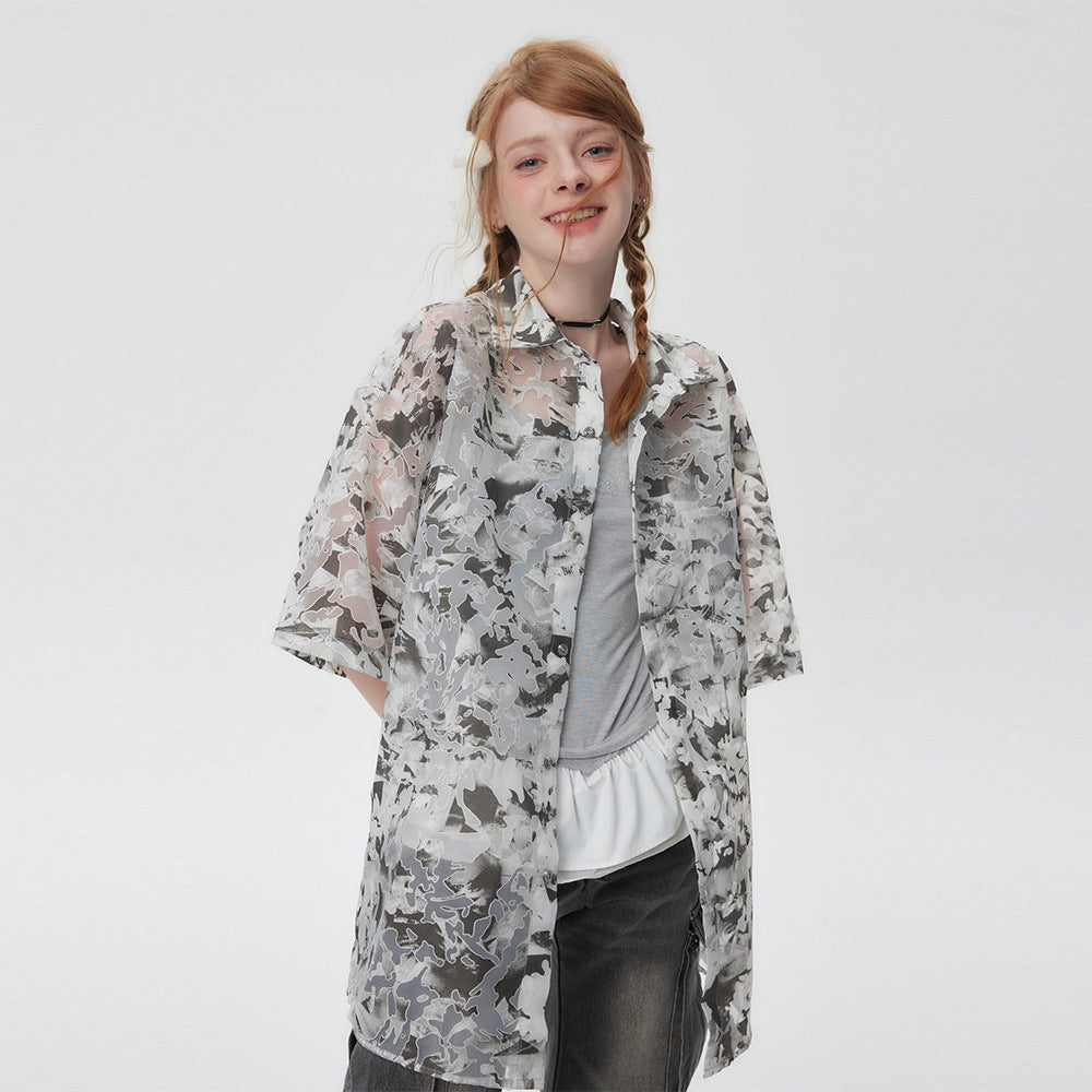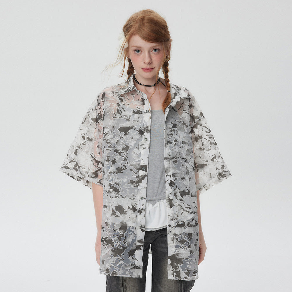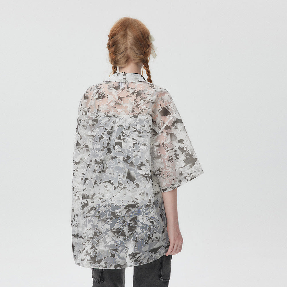 Tie-dyed Contrast Color Short-sleeved Shirt For Men