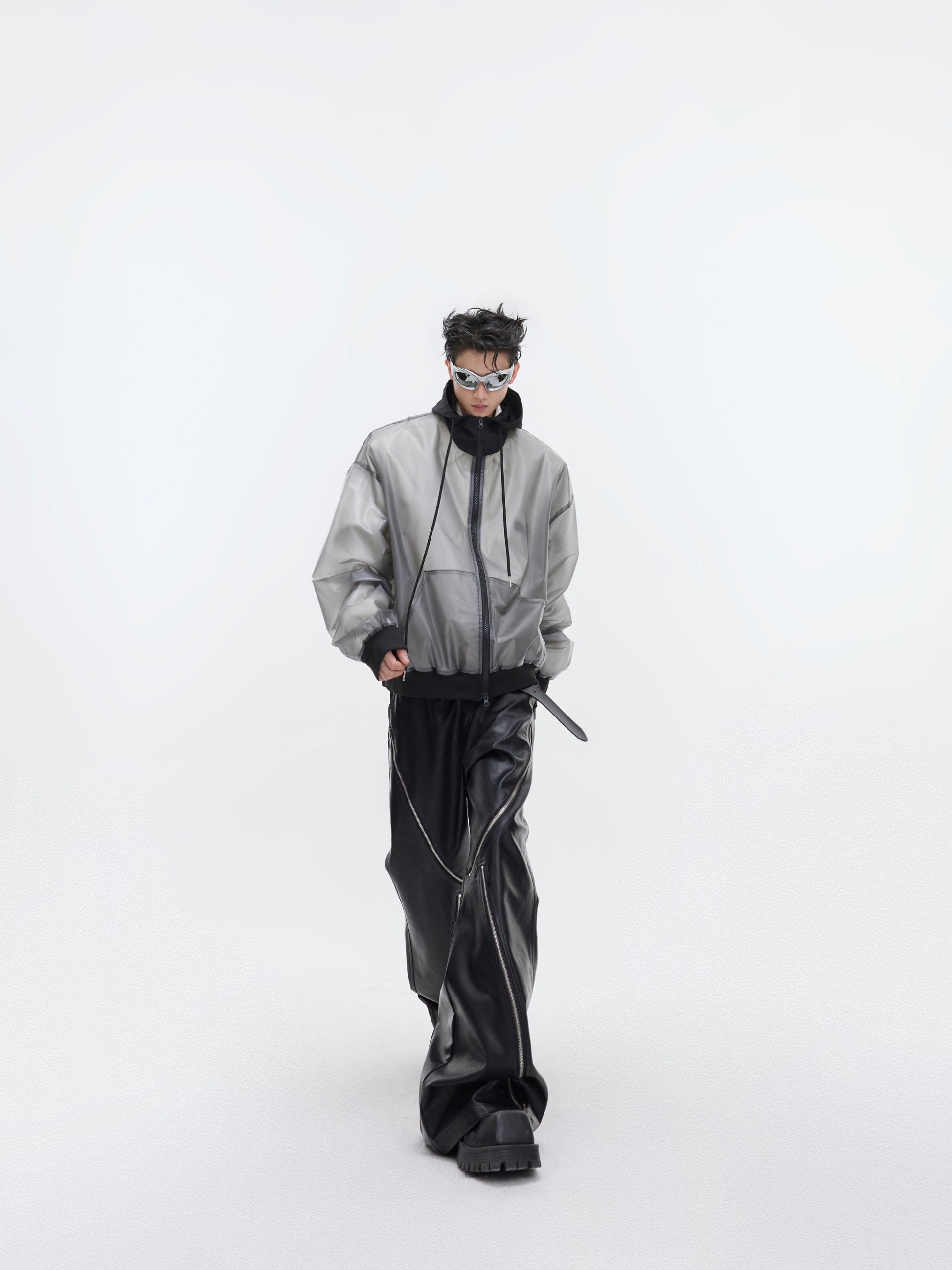 Transparent Design Pu Leather Coat Hooded Loose Jacket Men And Women