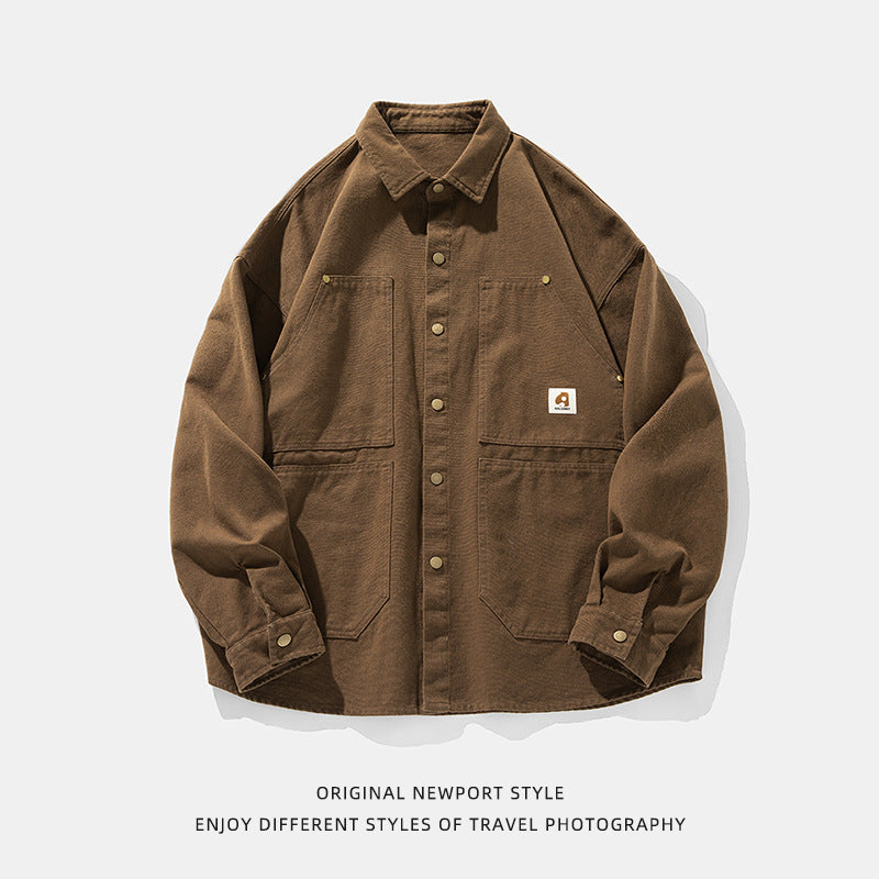 Washed American Retro Cotton Long-sleeved Shirt