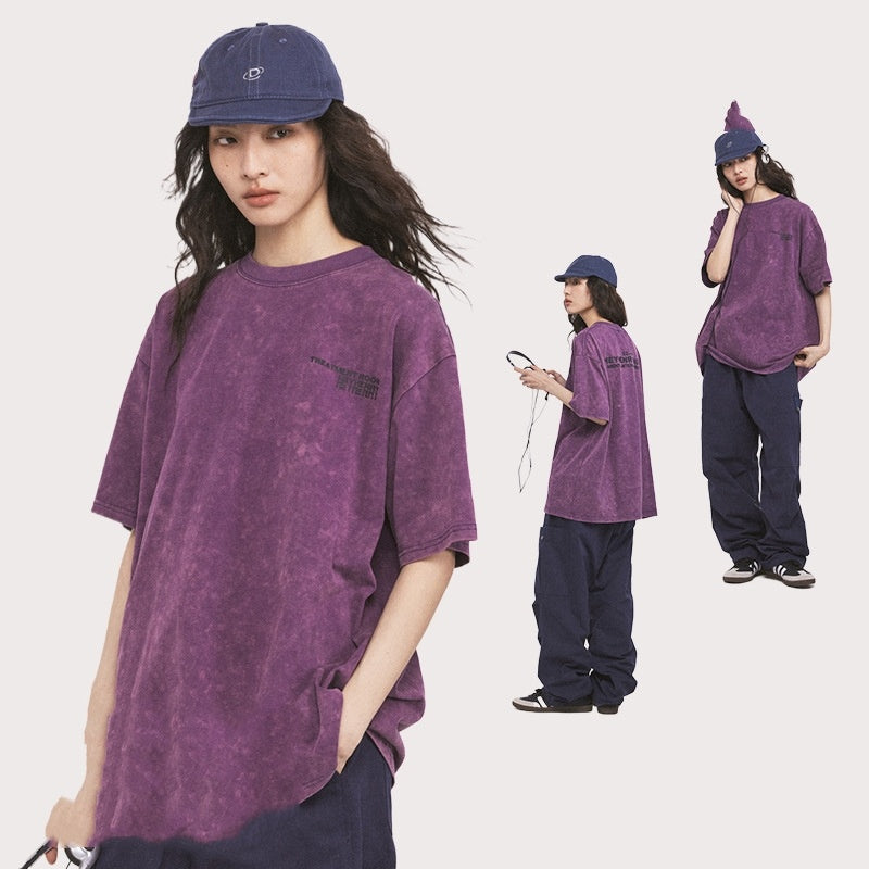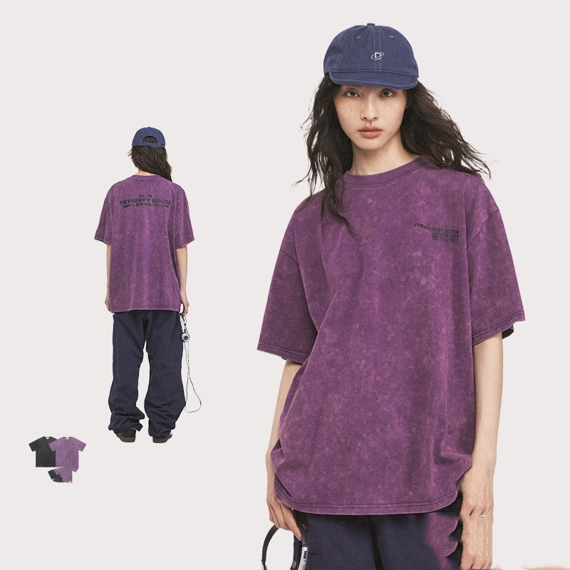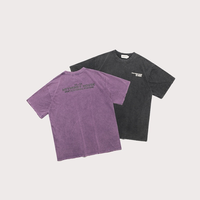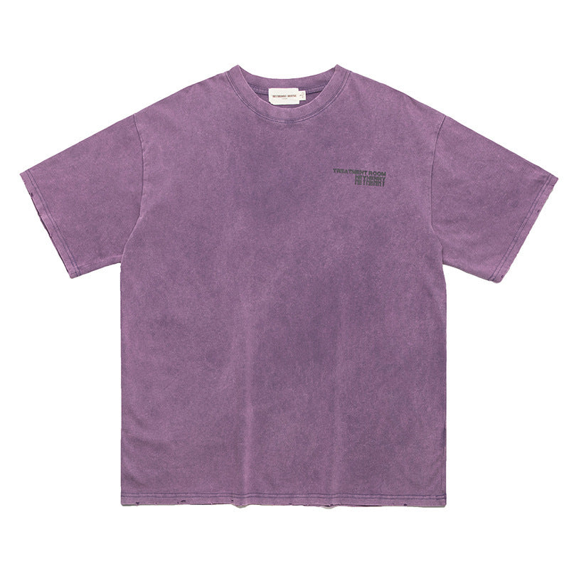 American High Street Retro Distressed Fashion Letters Printed Tatted Washed Short Sleeve