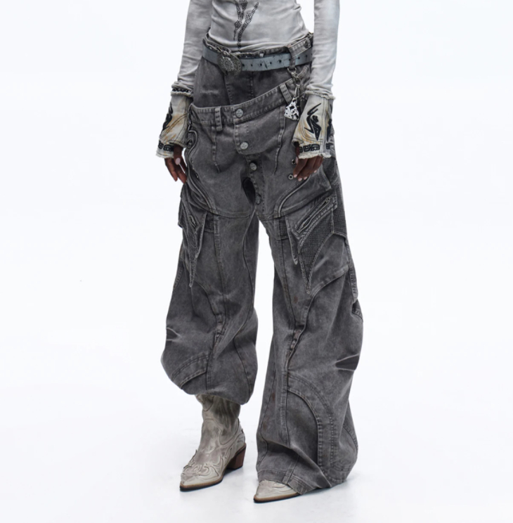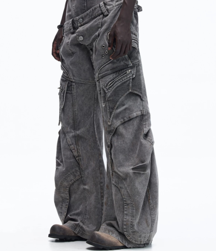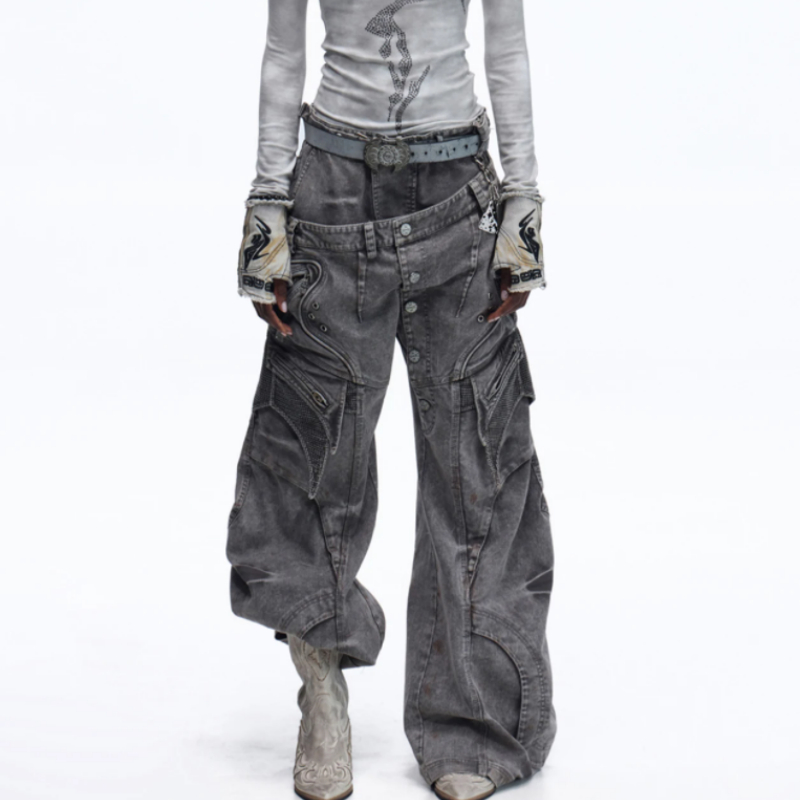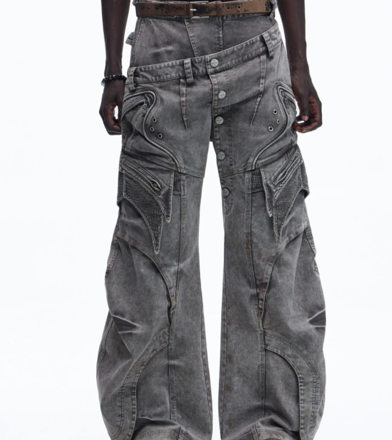 Asute Dyed Pearl Canvas Work Pants With A Slanted Placket And Double Waist Design