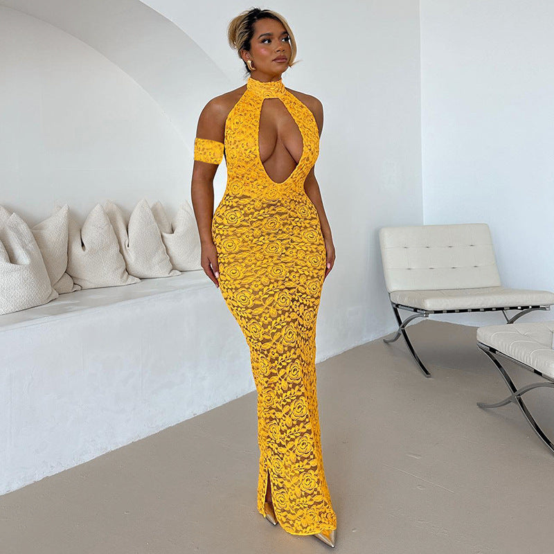 Chest Wrap Lace See-through Slim Fit Backless Dress