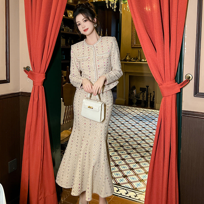 Coat Top High Waist Fishtail Skirt Two-piece Set
