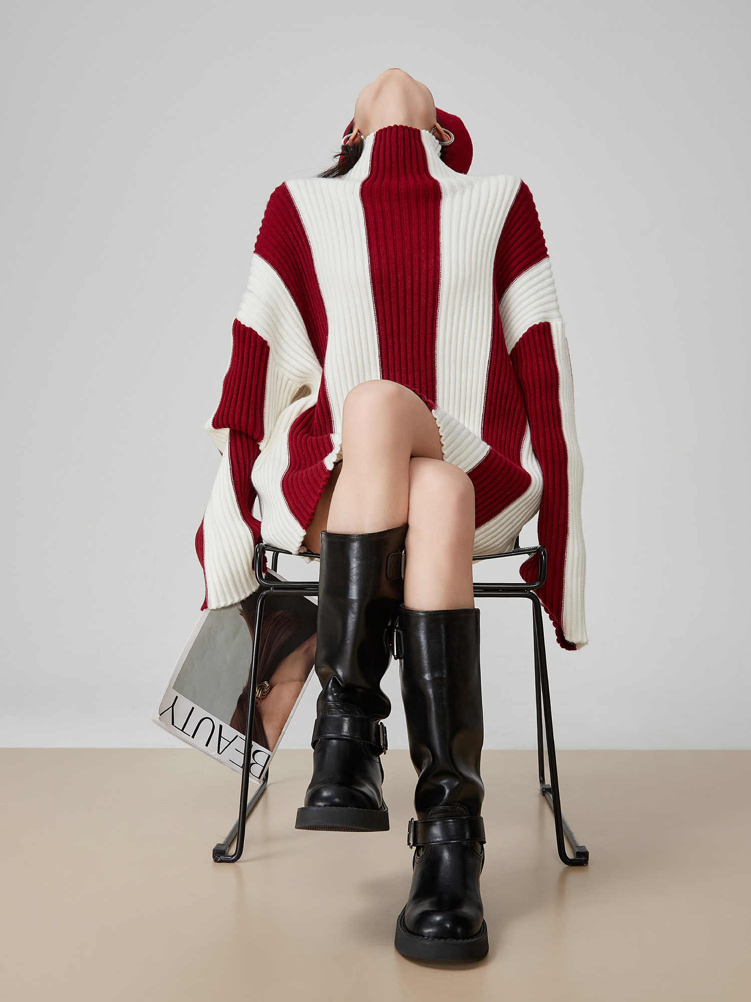 Contrast Color Pit Striped Turtleneck Sweater