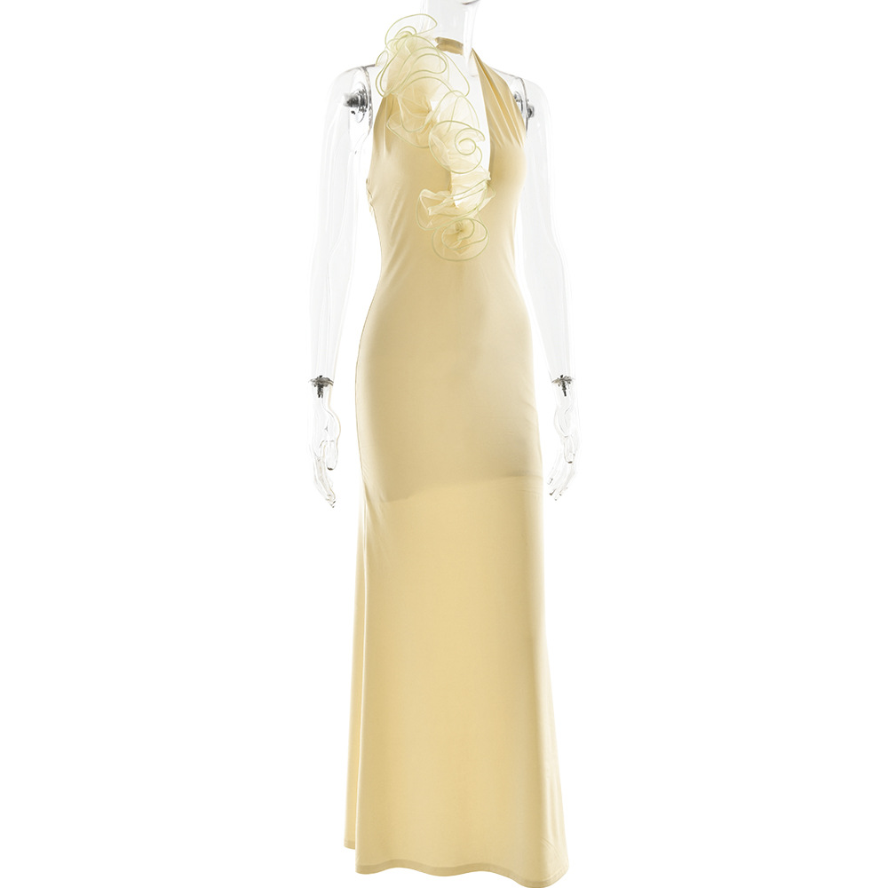 Elegant Slim-fit Halter Long Dress Sexy Backless Sheath Dress
