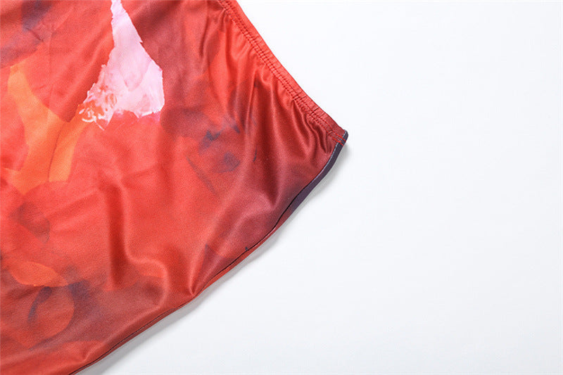 Fashion Digital Printing High Waist Slim Fit Long Dress Women's Suit