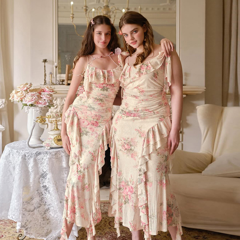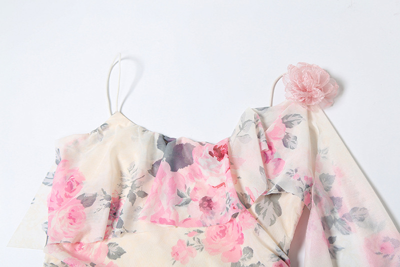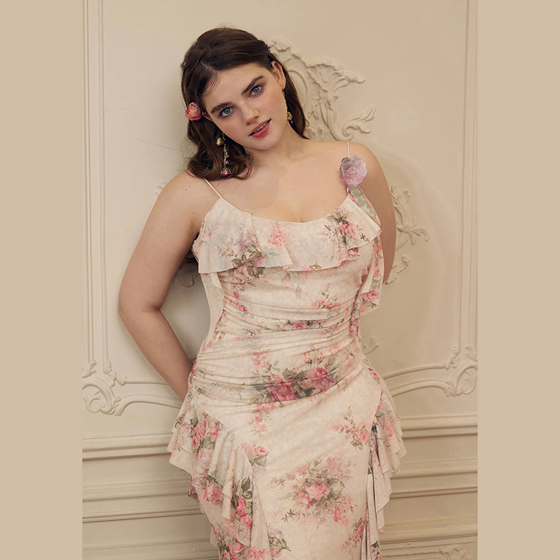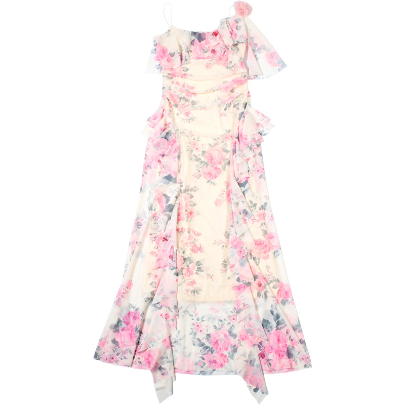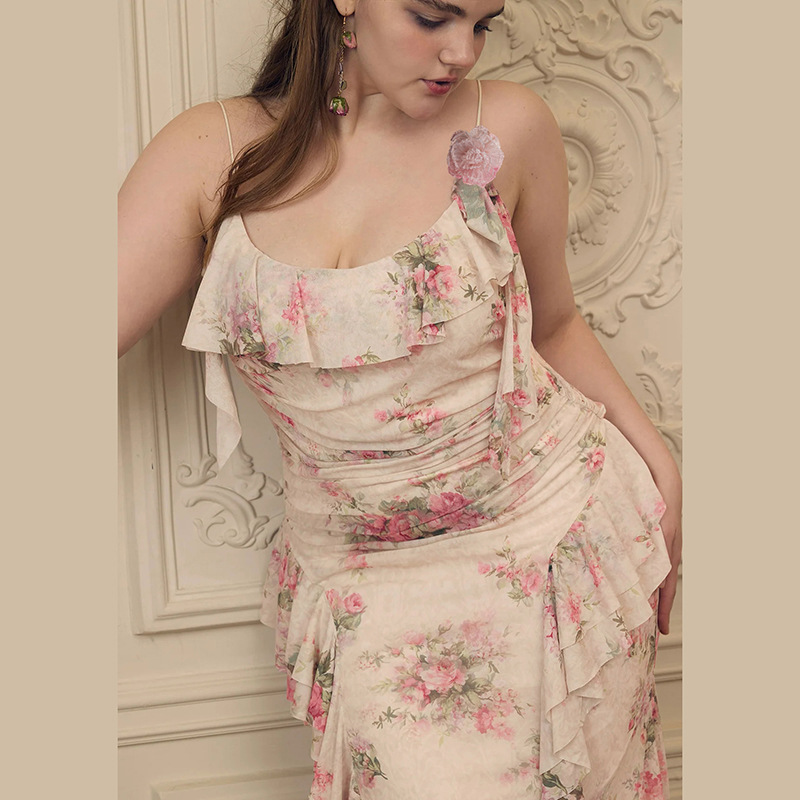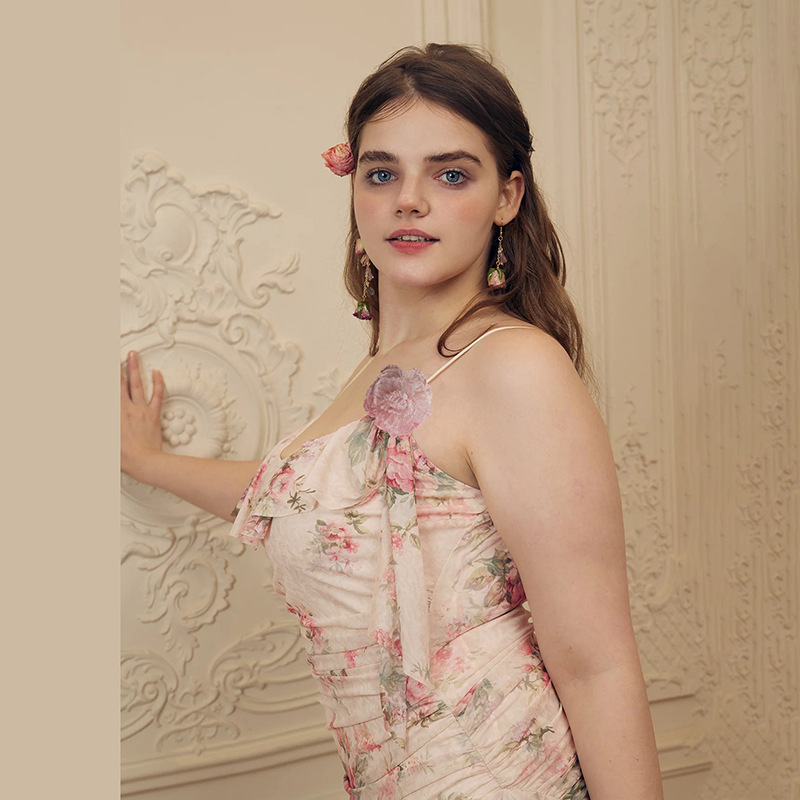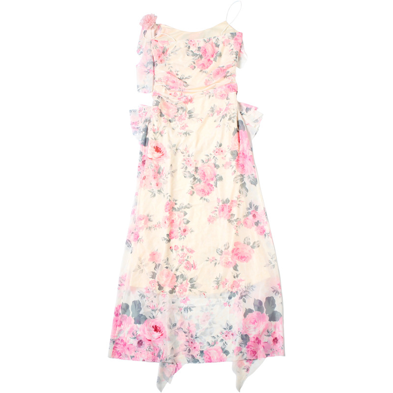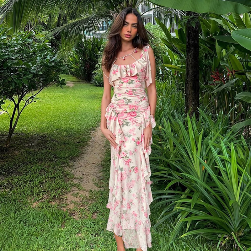 Fashion Sweet Printed Sleeveless Sling High Waist Slim Fit Dress
