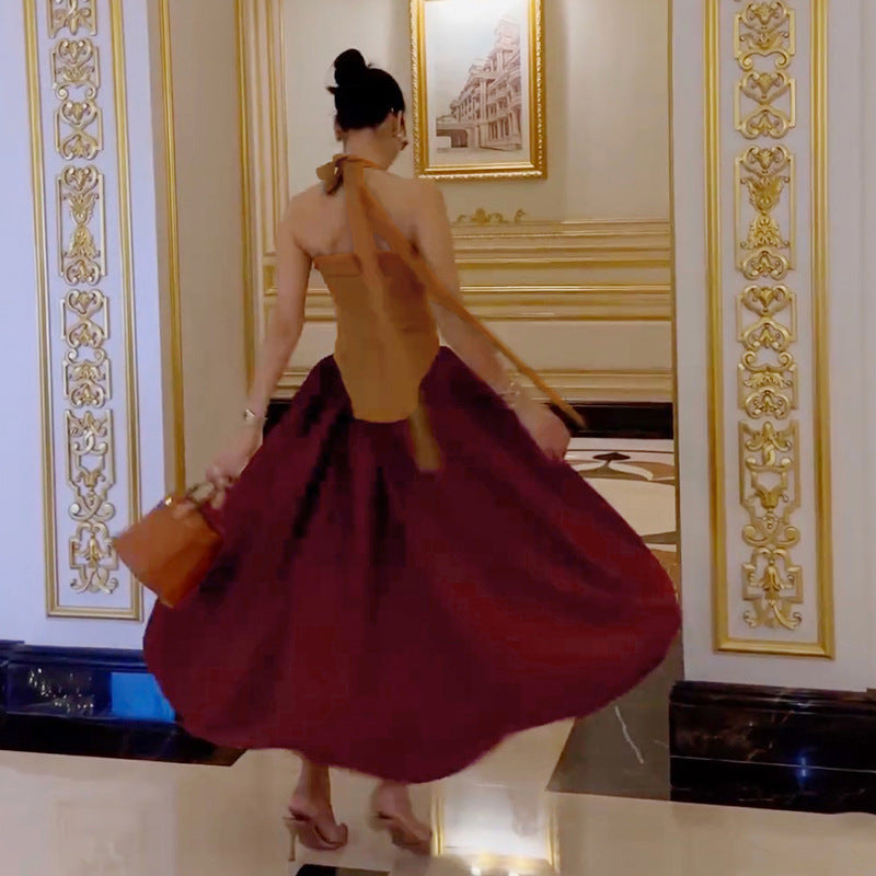 Fashion Vacation Style Halter Lace-up Backless Slim Fit Dress