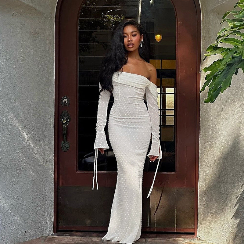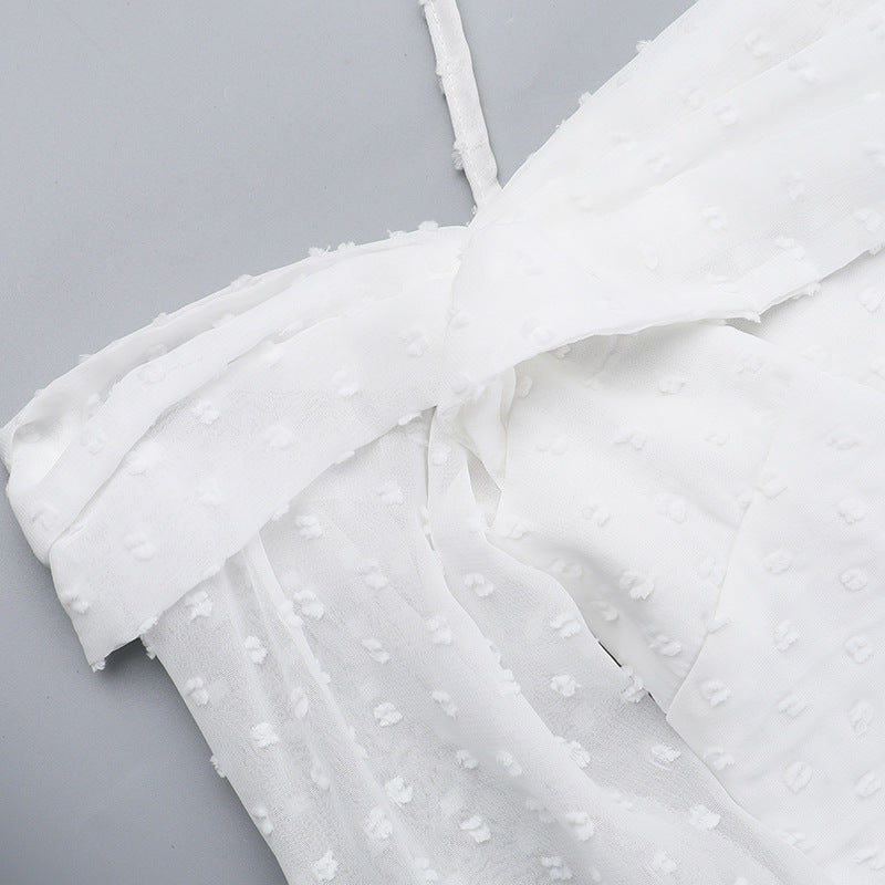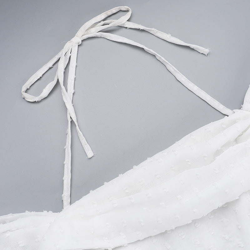 Hanging Neck Polka Dot Jacquard Dress For Women